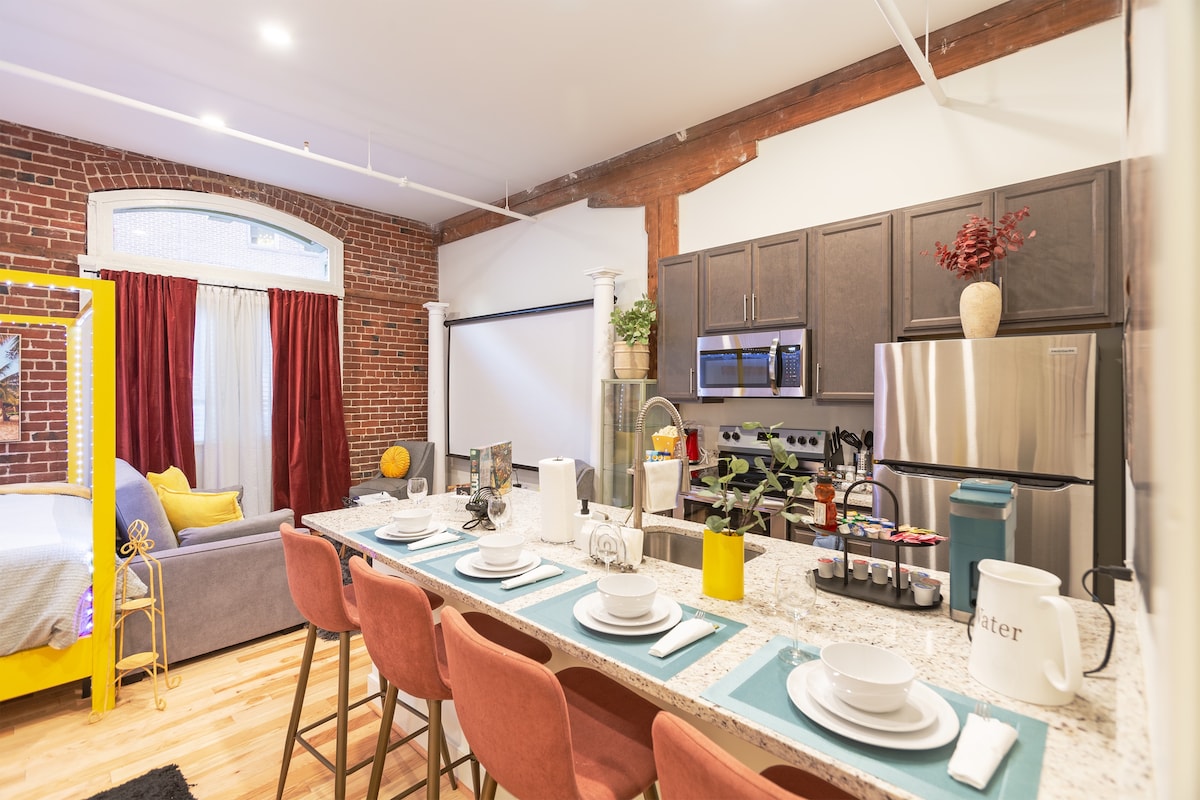 LOCATIE IS KING; dit is waar het zakendistrict, James River, Shockoe slip &Cary St samenkomt. Dit creatieve en ruime loft-appartement met twee verdiepingen biedt comfort, doordachte en onvergetelijke voorzieningen en gemakkelijke toegang tot de stad. Op de eerste verdieping geniet je van een ruime complete keuken, eet- en woonruimtes. Vraag me naar mijn 130 inch filmavond en popcornpakket. Beneden is een kingsize bed en een kleinere kamer met twee fulls en een eenpersoonsbed. Te veel beloopbare restaurants en bars om op te noemen. Gratis parkeren!