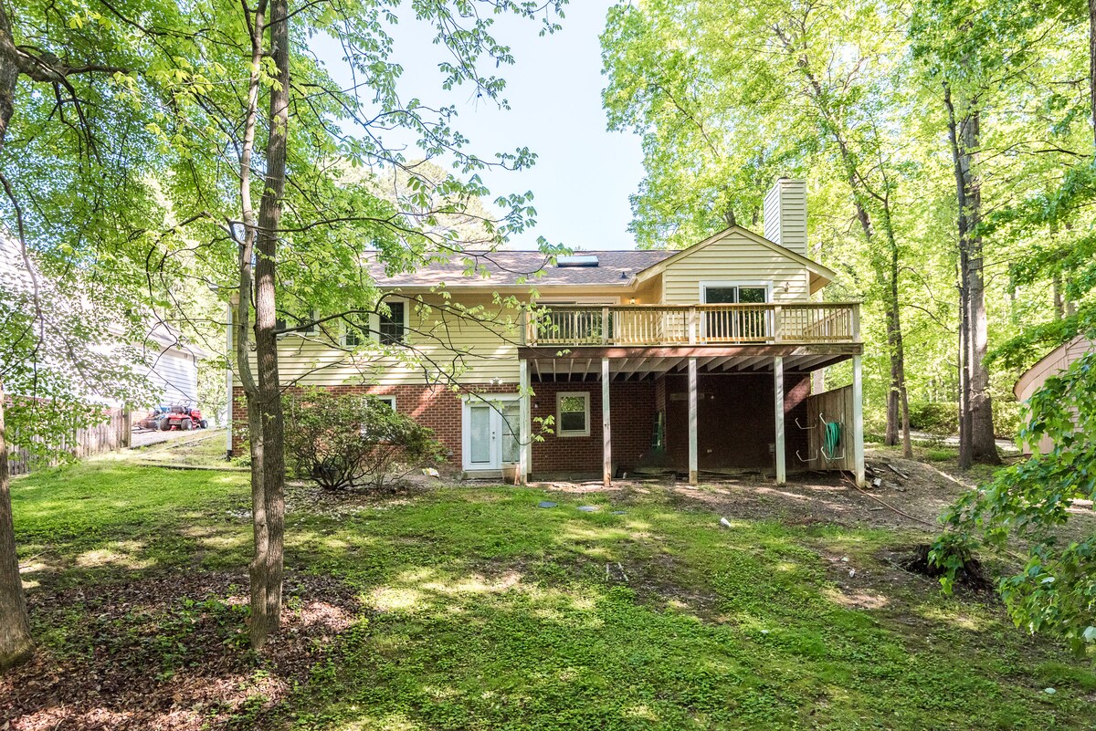 Geniet van een ontspannen uitzicht op Falling Creek vanuit het appartement op de tweede verdieping met een eigen ingang en balkon. De muur van ramen kijkt uit op een afgelegen achtertuin met bezoekende herten, reigers, uilen en andere wilde dieren. Ga bij de vijver, beek of vuurplaats zitten. De accommodatie biedt parkeergelegenheid op straat in een veilige buurt die op 20 minuten van het centrum van Richmond ligt, op tien minuten van Midlothian en Chesterfield, op drie minuten van Swim RVA.