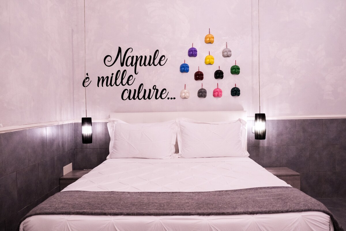 Luxe appartement: een combinatie van klassieke elegantie en moderniteit, net gerenoveerd met JACUZZI en PRIVÉ DAK van 90 m² waar je de vulkaan Vesuvius kunt bewonderen. Gelegen in een historisch gebouw op de 3e verdieping zonder lift in het hart van de oude stad, kun je alles bereiken door te lopen. Wifi, PrimeVideo, Nespresso en GRATIS bagage-opslag Bezienswaardigheden • Duomo van twee minuten • 4 min Ondergronds Napels • 6 minuten met de metro L1 en L2. • Treinstation op vijf minuten • 10 min Harbour