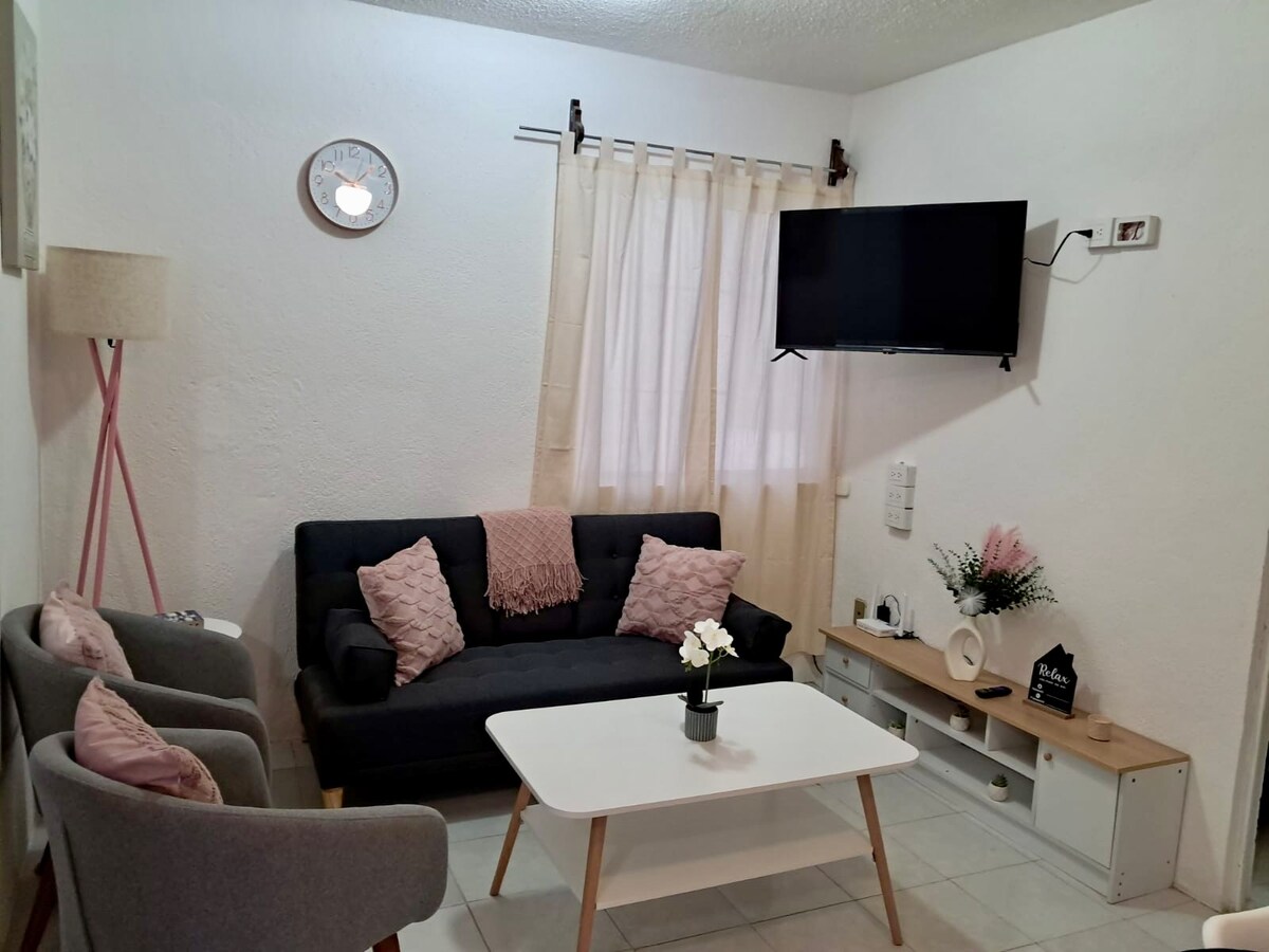 ¡Zelf inchecken! ¡Bacturamos! Appartement alleen voor jou met een slaapkamer met 2 tweepersoonsbedden, eigen keuken en badkamer, snelle wifi, (koperen verbinding) en smart-tv. Op steenworp afstand van het historische en wandelcentrum van Guadalupe. Rust in een veilige straat en dicht bij openbaar vervoer en bussen die naar de luchthaven leiden, (erg handig als je vliegtuig's nachts aankomt). Reserveer nu voor kortingen op een lang verblijf en dompel jezelf onder in de essentie van de stad!