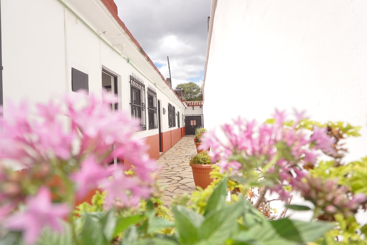 Appartement in vintage-rustic-stijl in een 200 jaar oud huis met uitzicht op de straat op een uitstekende plek op twee blokken van Plaza Central. Ondergedompeld in de sfeer van de stad, geconditioneerd om onafhankelijk en comfortabel te zijn, is het handigste aan mijn ruimte dat het in het centrum ligt, het is misschien niet de ideale plek als je gewoon het geluid van het veld wilt horen. Wij bieden elementen voor ontbijt zoals fruit, toast, jam, boter, melk en sap.
