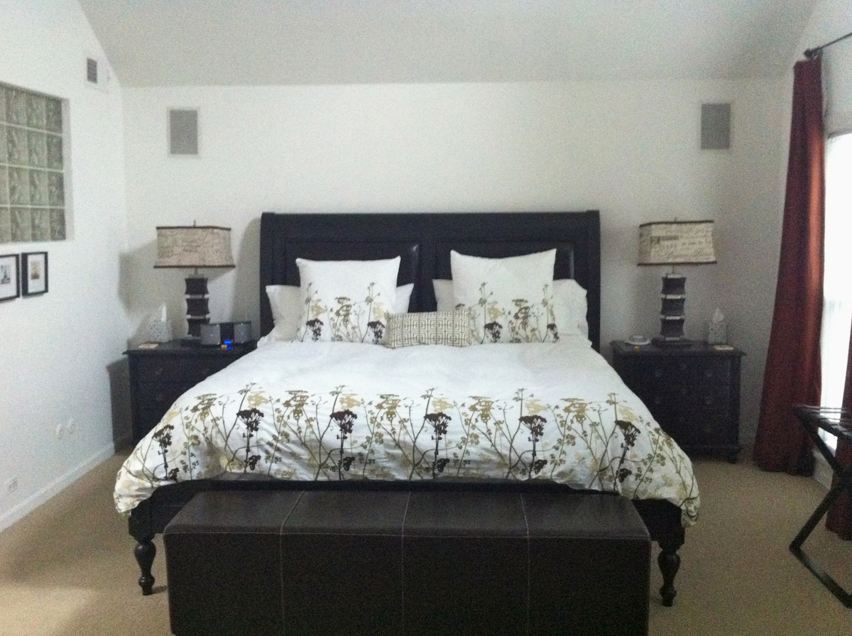Eigen slaapkamer met kingsize bed in het hart van het centrum van Chicago