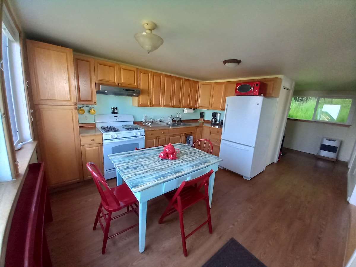 Geniet van dit toevluchtsoord in Elfin Cove. Het Yellow House is volledig uitgerust voor je uitje, langverwachte visreis of broodnodige oplading van de zee. Als je van plan bent om met de boot te komen, ligt het huis op een steenworp afstand van het openbare dok. De accommodatie is uitgerust met visverpakkingsfaciliteit, waaronder vacuümverpakker en vriezers. Als je van plan bent om vanuit Juneau te komen voor een geweldig uitje, hebben we om de andere dag van de week vanaf 1 juni vervoer van en naar de veerboot aangesloten. Informeer voor meer informatie.