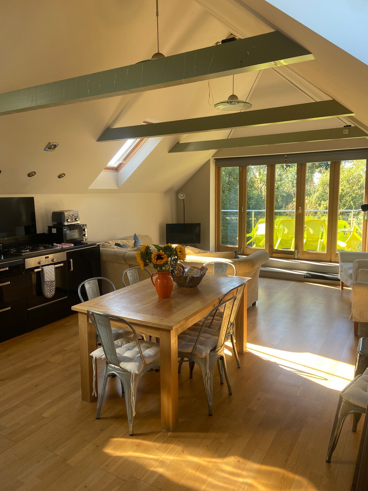 Een prachtige, ruime, lichte en luchtige zelfstandige tuinstudio. Op 3 minuten lopen van het centrum van Chichester, met theater, bioscopen, Pallant Gallery, kathedraal, restaurants en bars. Continentaal ontbijt inbegrepen. GRATIS PARKEREN OP ONZE OPRIT, NU MET EV-LADER (type 2) tegen extra kosten. Twee minuten naar treinstation/gratis bussen naar Goodwood-evenementen. Mooie wandelingen langs de grachten en landelijke pubs. Geweldige buitenruimte met eet- en bargedeelte, parasol en buitenverwarming.