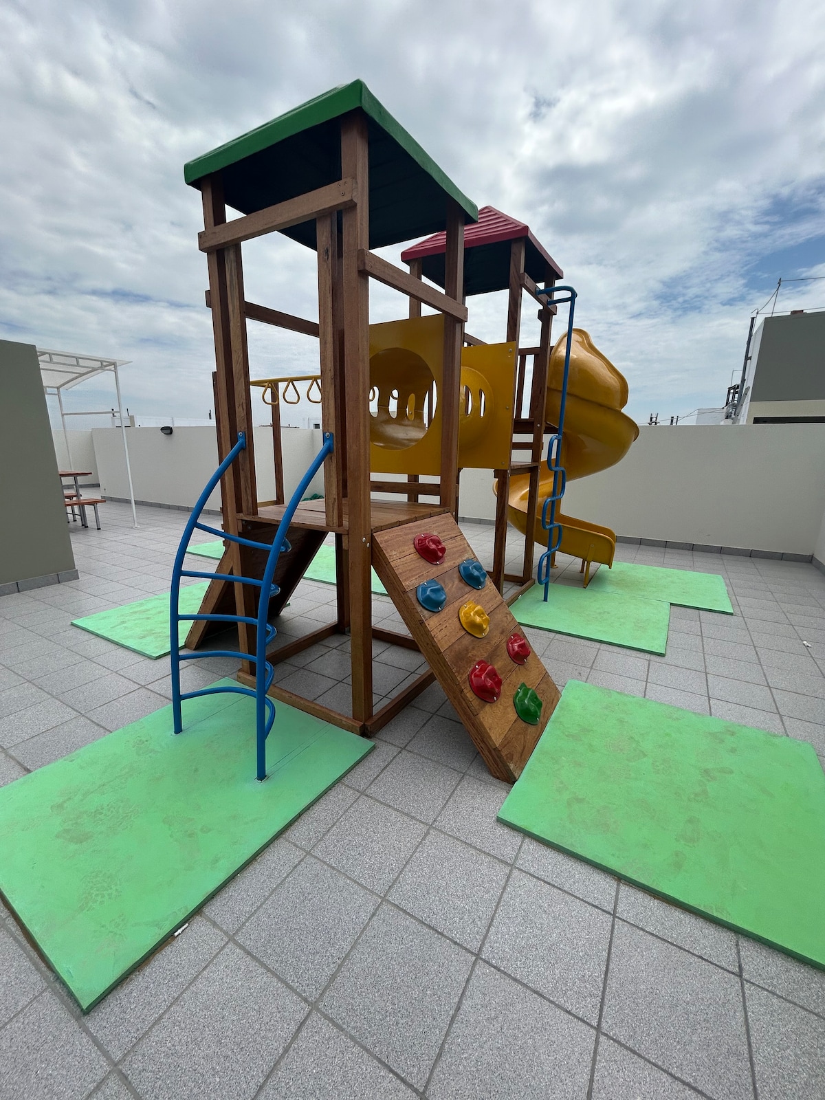 Disfruta y relájate en un acogedor departamento con terraza privada en Santa Victoria, zona privilegiada, tranquila y céntrica, llena de areas verdes, cerca del aeropuerto, tiendas, farmacias, minimarkets y los mejores atractivos turísticos de la ciudad, la terraza es perfecta para disfrutar de una copa de vino al atardecer o un desayuno al aire libre. Cuenta con dormitorio, sala comedor, Parrilla eléctrica, habitación con cama matrimonial, cocina total equipada, baño con agua caliente 24/7