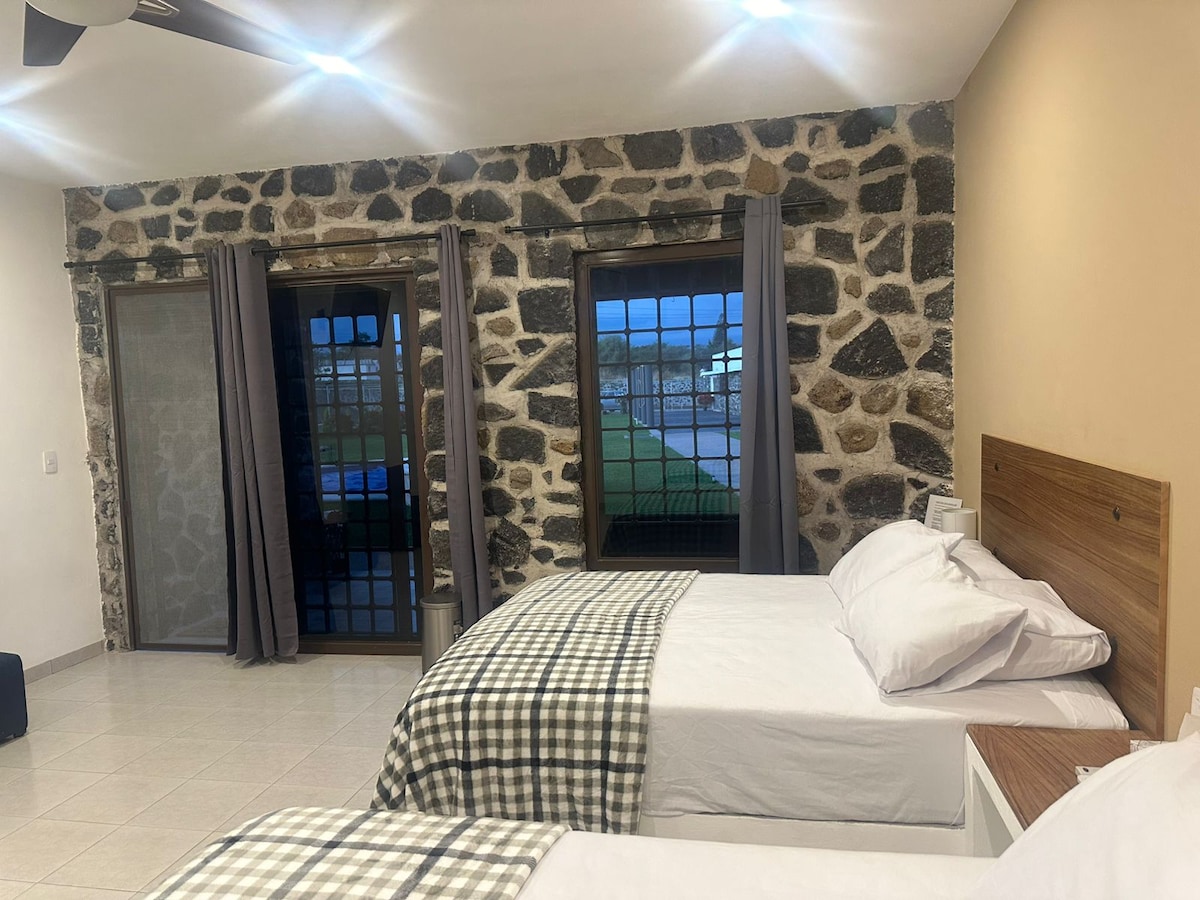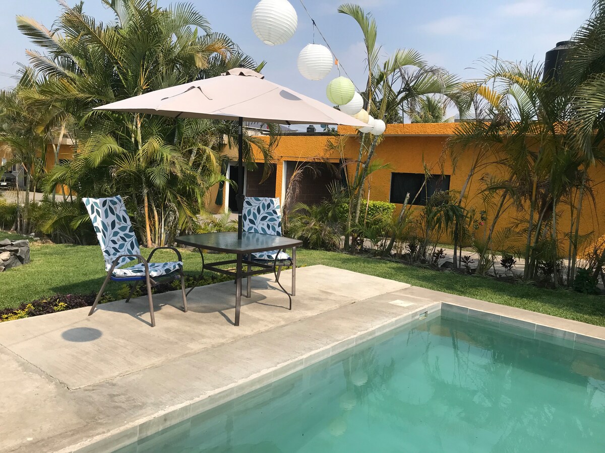 Comfortabele en gezellige ruimte met 15 kamers tussen dubbel en eenvoudig, met vrije ruimtes zoals patio en zwembad, met toegang vanaf de weg Mexico-Acapulco of Temixco; geschikt voor een snelle doorgang door de stad van de eeuwige lente, Cuernavaca. Gedeelde voorzieningen: Alberca, keuken, woonkamer en eetkamer