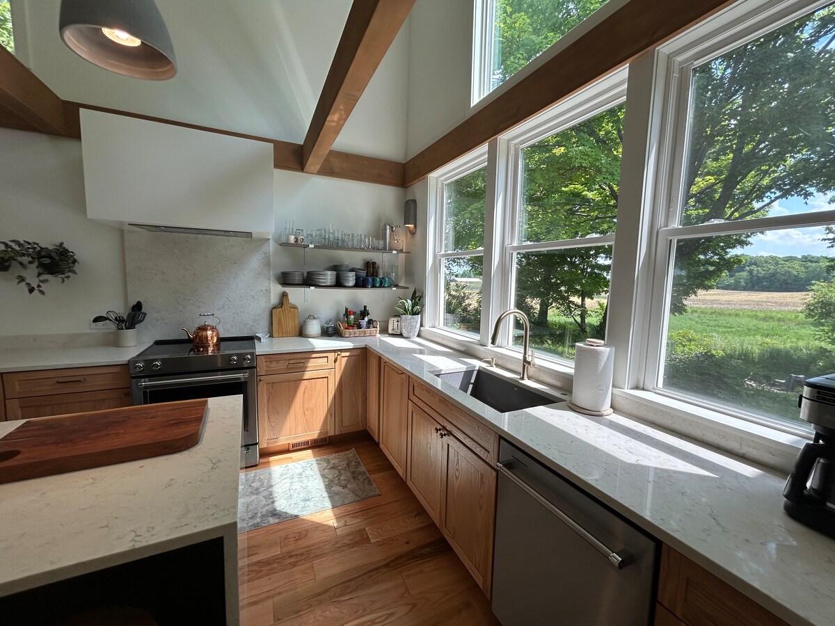 Kom en verblijf in onze volledig bijgewerkte boerderij uit 1860, centraal gelegen in het hart van Michigan Wine Country en op 7 minuten van Weko Beach! Omheinde tuin voor honden, ruim, stijlvol en comfortabel, met een uitgebreide keuken, een fitnessruimte en 3 grote slaapkamers, 2 en-suites. We hebben deze boerderij voor de burgeroorlog liefdevol tot leven gebracht en hebben alle comfort toegevoegd. Verwarmde tegelvloeren overal, designafwerkingen en een prachtige boerderijomgeving met ruimte om rond te zwerven en te ontspannen.