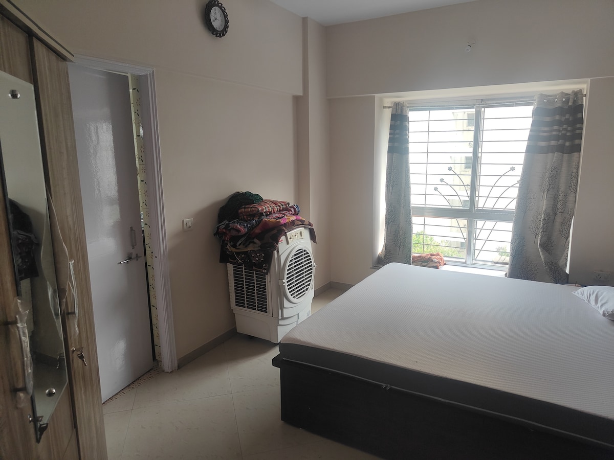 Deze stijlvolle accommodatie is perfect voor groepsreizen. Ons huis ligt in het hart van de industriële stad (PCMC) met de nabijheid van metro en openbaar vervoer. De plek heeft alle comfort die je huis kan bieden en het is nieuw gedaan (zonder geur van verf :). Wij bieden een 2BHK met 2 badkamers, de master bedroom als ensuite badkamer. De ruimte heeft ook een speciale studie/ kantoor/ werkruimte voor bedrijven die een speciale ruimte voor hun laptops willen. Slaapkamer is uitgerust met airconditioning.