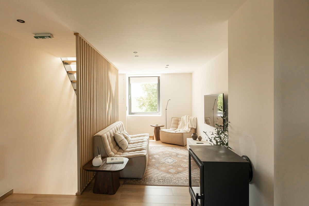 Onze duplex in moderne stijl is net volledig gerenoveerd en is volledig uitgerust. Gelegen in het stadscentrum blijft het een rustige plek gelegen aan de achterkant van het gebouw ("creaflors" winkel - achtertuin). Onze accommodatie van 70 m² is georganiseerd op 2 niveaus met alle benodigde apparatuur: woonkamer, eetkamer, volledig uitgeruste keuken, volledig uitgeruste keuken, grote slaapkamer met leesruimte, badkamer met bad en douche. Het is gunstig gelegen in het centrum van Couvin met gratis parkeergelegenheid aan de overkant.