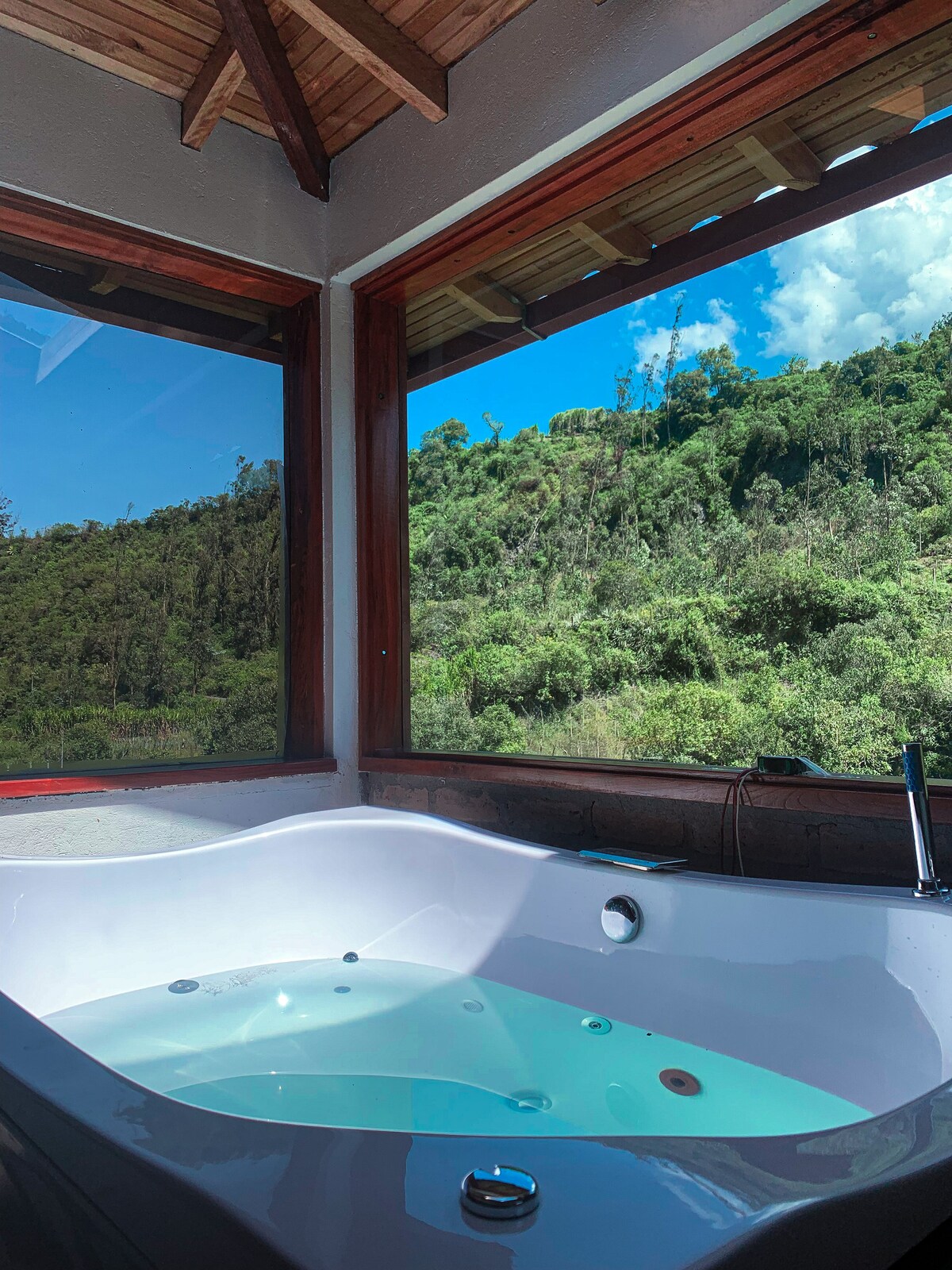 Disfruta del encantador entorno de este romántico lugar en la naturaleza. Relájate en nuestra tina de baño con vista hermosa hacia los árboles. Somos los cómplices de tus momentos especiales, si gustas decoraciones o recomendaciones de lugares en Riobamba, estaremos gustosos de servirte en la casa principal situada frente a la suite.