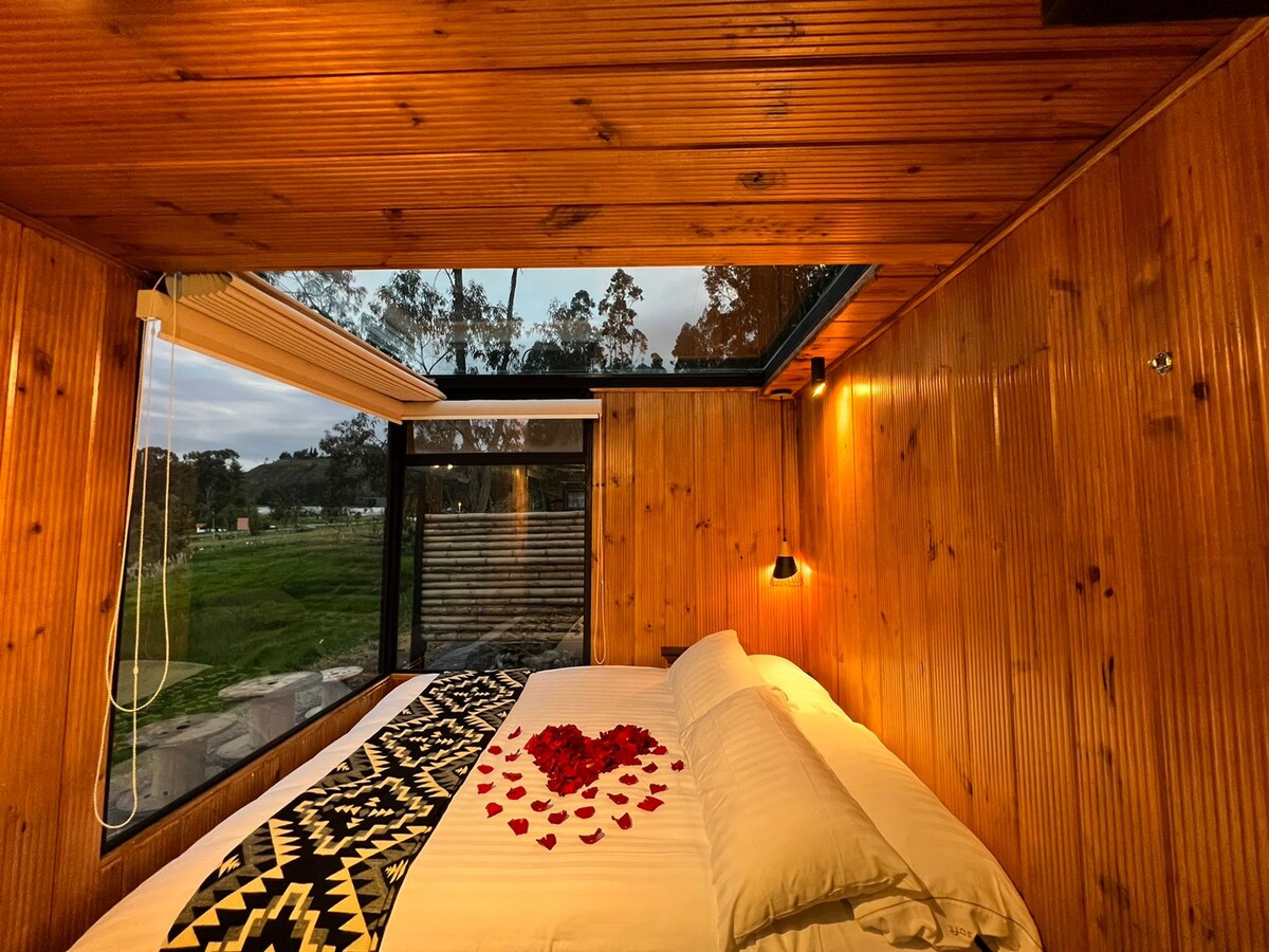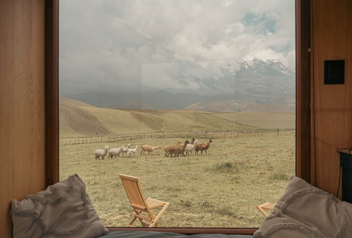 Mini casa moderna y confortable con chimenea Interior en las faldas del Chimborazo. Tenemos la mejor vista ya que somos el hospedaje más cercano y alto del Chimborazo, además contamos con una ventana en el techo,en donde podrás mirar la vía láctea y las estrellas en todo su esplendor ya que en la zona no existe contaminación lumínica, por lo que garantizamos que no olvidarás tu estadía en nuestro lugar romántico y memorable.