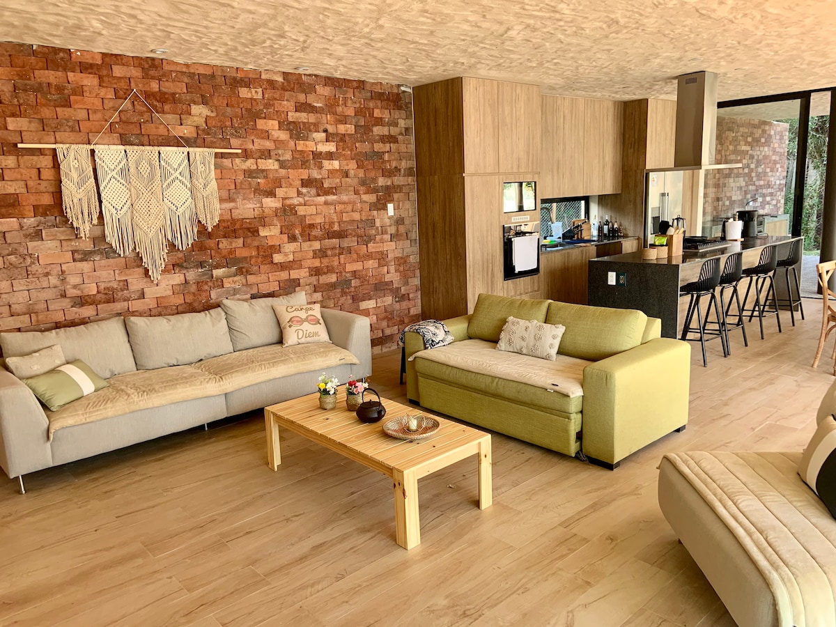 La casita de campo de 100 m2 se encuentra dentro de un condominio vigilado las 24 horas , pero el uso de la casa , el jardín súper grande y la piscina es exclusivo para los huéspedes , Es una casita rústica pero con todas las comodidades básicas :) No contamos con internet! Es importante saber hay unos 15 minutos max de trocha antes de llegar al condominio. La casa es petfriendly (sólo aceptamos una mascota)