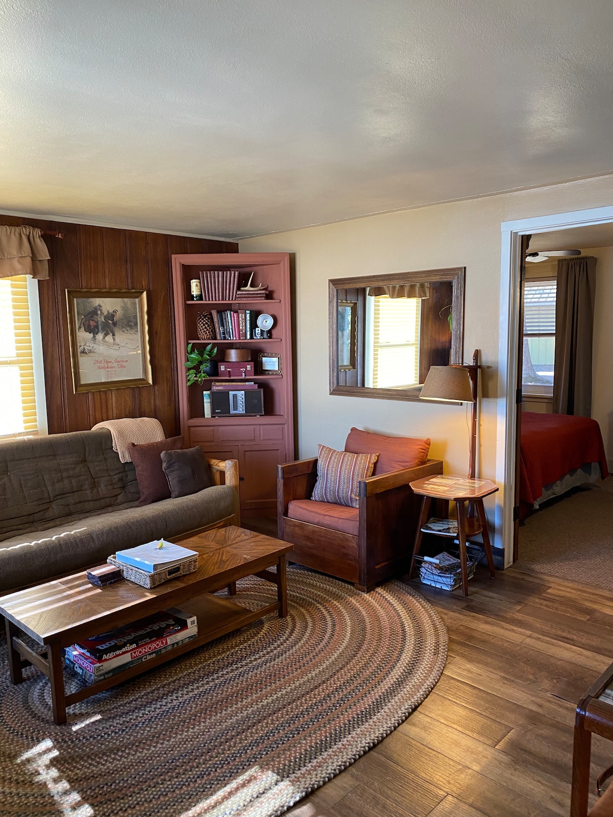 Genesteld langs de Chippewa-rivier met een rustig uitzicht! Bdrm One beschikt over een queensize bed, een elektrische open haard en een uitzicht waar je niet kunt wachten om wakker te worden! Bootlanding binnen 5 mijl. Bdrm twee beschikt over 2 tweepersoonsbedden, ook aan de rivierzijde voor licht, gezellig, ochtenden. Living rm is voorzien van elektrische open haard, grote tv, wifi, grote bank, eettafel, & bureau. LEES alsjeblieft: er is een State Hwy (in de buurt) aan de westkant van het pand. Basisprijs is voor twee gasten.