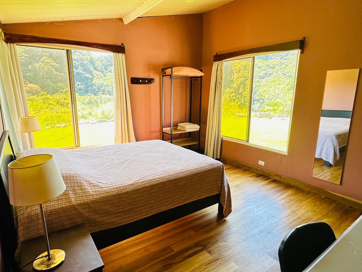 Enjoy the incredible nature and scenery at this unique and tranquil getaway. This small house is located on a private peninsula surrounded by the Caldera River, next to a small fruit forest. Situated in a canyon and surrounded by beautiful nature, the area is great for exploration, including lagoons for swimming, hiking around the Caldera River and surrounding jungle. If you are looking for something extremely unique, surrounded by nature for a complete nature retreat, check out this place.