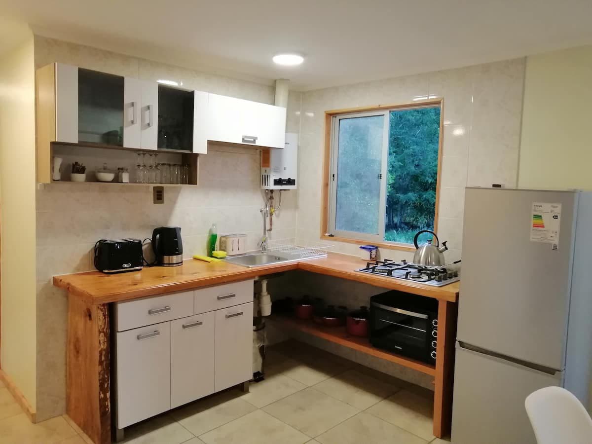 Cabaña para la desconexión , esta al medio de la reserva biológica de huilo huilo es una cabaña sustentable , que funciona con paneles solares y agua de vertiente , la cabaña esta muy bien equipada y esta dentro del condominio vivir el bosque de huilo huilo , cercano al hoteles y a las atracciones del lugar, preferencia subir con autos con tracción en invierno , pero en verano pueden subir autos sin tracción pero con un motor mediano.