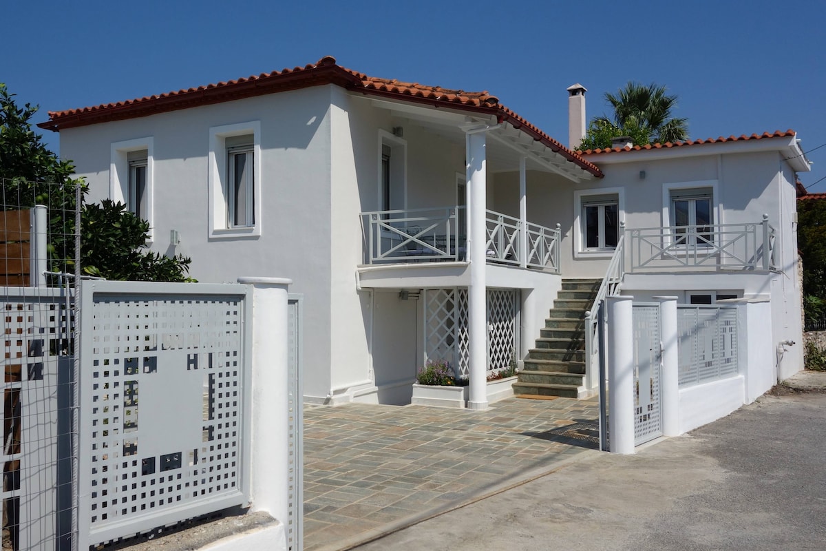 Het huis is 135 m² en bestaat uit: 4 slaapkamers, woonkamer, keuken, open ruimte met open haard, 2 badkamers en 2 balkons. Het is uitgerust met alle benodigde keukengerei om een volledige maaltijd te bereiden (keuken -koelkast-ketel-toaster). Het is geschikt voor maximaal 8 personen. In een slaapkamer met twee bedden, badkamer en koelkast is er de mogelijkheid van autonomie van de rest van het huis. Op de begane grond is onze traditionele taverna "Paralia" en wacht op u om de traditionele gerechten van het Laconiaanse land te proberen.