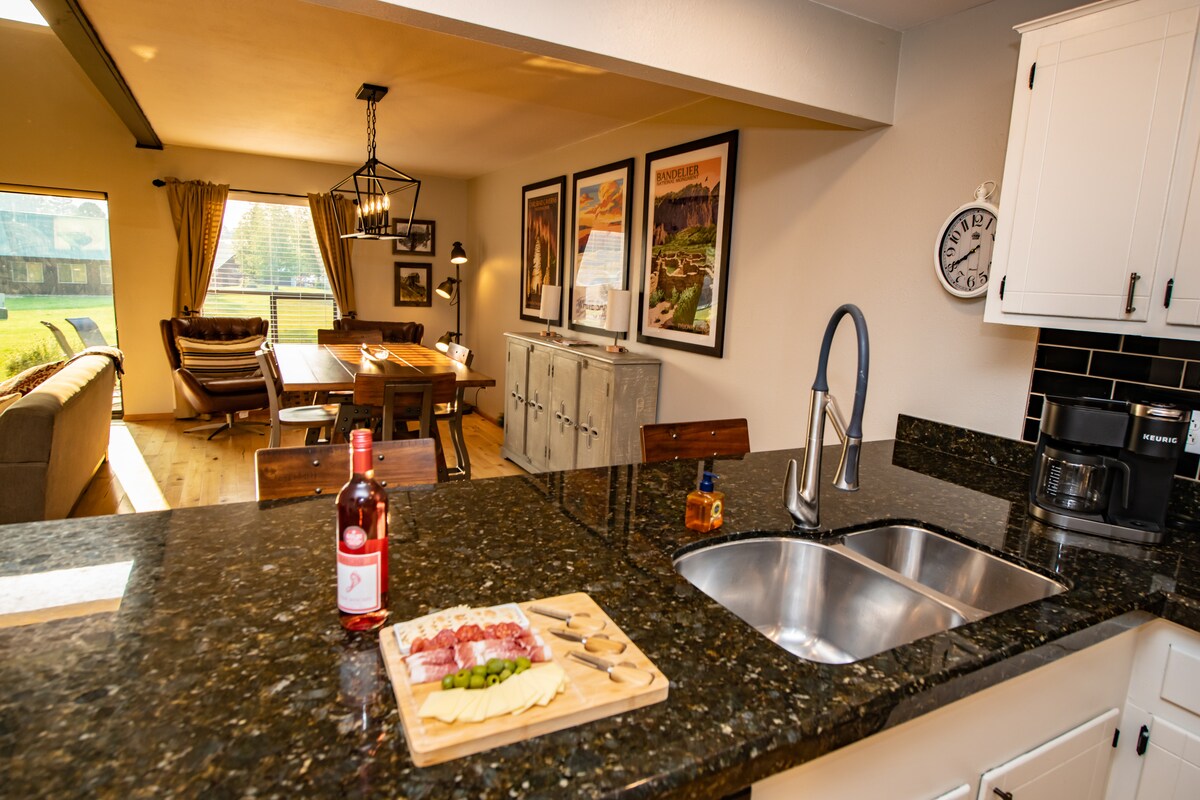 "Little Bear's Townhouse" is a clean and quiet retreat. The townhouse is tastefully decorated, featuring artwork from local artists. Little Bear's townhouse is seconds from the heart of downtown with beautiful mountain views and is in walking distance to some of the best live music and events. This convenient location is close to the hot springs, grocery stores and restaurants.