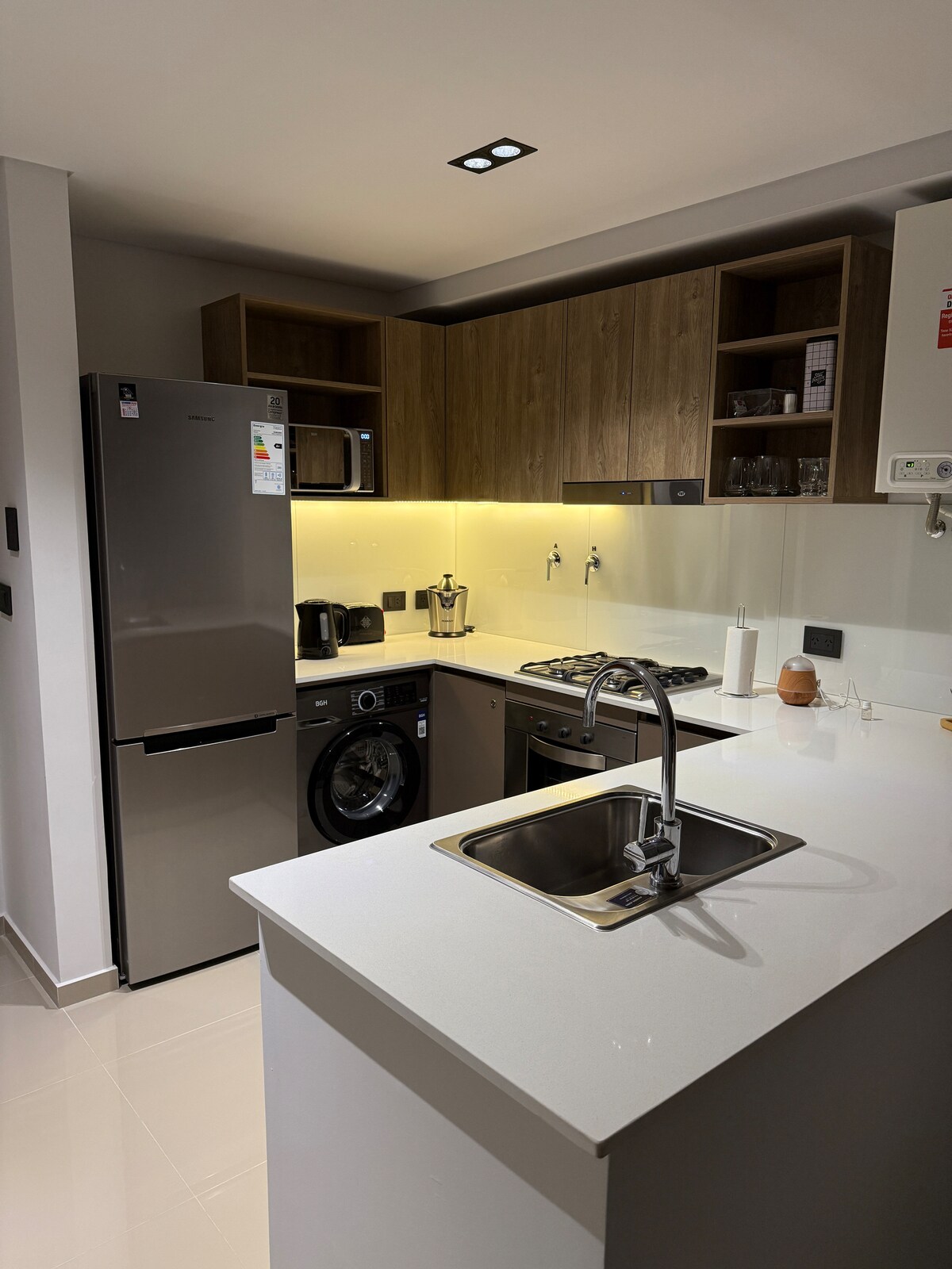 Dit ruime en lichte appartement is gelegen in een modern gebouw. Het heeft een balkon met een grill. Het interieur is comfortabel, met vloerverwarming, airconditioning en een keuken met een oven, magnetron, broodrooster, waterkoker, koffiezetapparaat en een complete set gerechten. Het heeft een smart-tv, wifi, een haardroger en een badkamer. Hoogwaardig beddengoed en handdoeken zijn aanwezig voor je comfort.