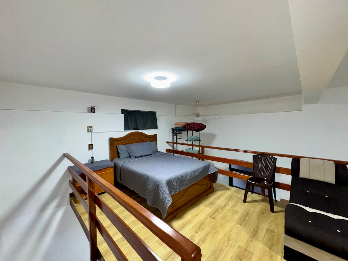 Disfruta de una estancia tranquila en este encantador garzonier con Parrilla Privada! ubicado a pasos de Av de las Americas, barrio petrolero. El garzonier cuenta con una cama matrimonial, sofá cama, baño privado con agua caliente, y una cocina equipada con lo necesario para preparar tus comidas favoritas. Además, ofrece una pequeña sala con TV y WiFi de alta velocidad. Estarás rodeado de supermercados , cafeterías, restaurantes y plazuelas.