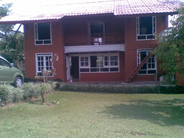 @di.alaya ligt in de hooglanden van Sentul KM0, op slechts een uur rijden om aan het drukke Jakarta te ontsnappen. We hebben een mezzanine, 2 slaapkamers met een open concept, 2 badkamers, een keuken en een open terras met een geweldig uitzicht beschikbaar vanaf bijna overal in het huis. Geen airco. Gemaakt voor 4 personen, geschikt voor 6 personen. Er worden extra gasten in rekening gebracht. Onveilig voor kinderen jonger dan 12 jaar. HUISDIEREN ALLEEN TOEGESTAAN VOOR VERANTWOORDELIJKE EIGENAREN.