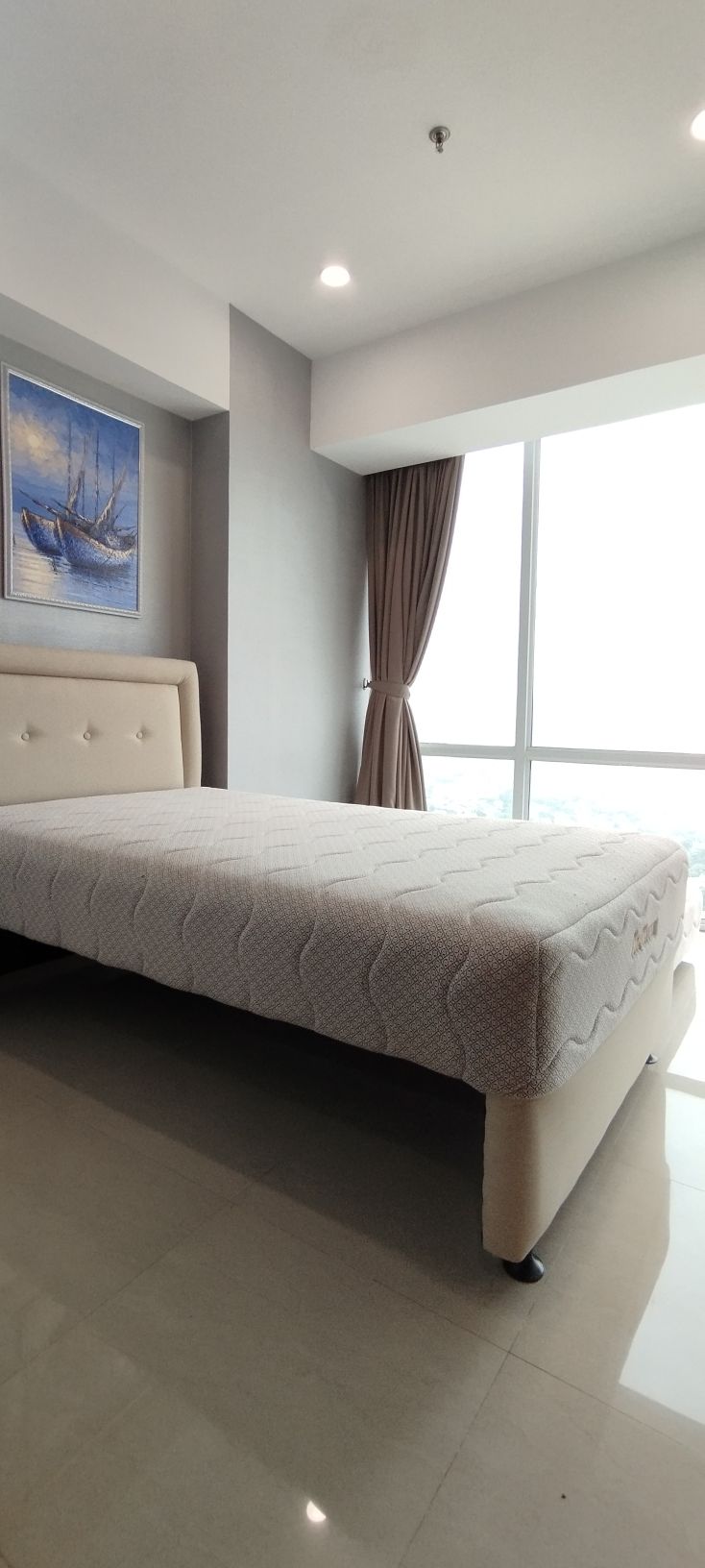 op de 30e verdieping met 113 m ² woonruimte. Twee slaapkamers en twee badkamers. primaire slaapkamer heeft een kingsize bed met ensuite. secundaire slaapkamer heeft een dagbed met 2 laden en 2 matrassen( totale grootte 160x200cm). 2 extra vloermatrassen zijn voorzien van grootte 100x200 en 80x190. die kan worden geplaatst waar de gasten maar willen. geen tandkits en wasmiddel voor het wassen van kleding aanwezig. al het andere dat je normaal gesproken zou verwachten is aanwezig. schoonmaakslaapkamer (op aanvraag) en een halve badkamer is beschikbaar.