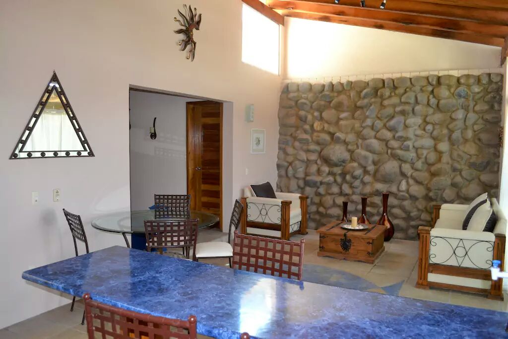 Vergeet je zorgen en ontspan. Met alles wat je nodig hebt binnen handbereik, waaronder een ZEER goed uitgeruste keuken voor liefhebbers van koken (al is het maar op vakantie), en slechts een paar stappen naar een 24-uurs Oxxo als je iets nodig hebt, geeft Hacienda El Marco de ruimte om op zoveel manieren te ontspannen en van het leven te genieten. Foto's kunnen de vrijheid die dit uitje biedt niet vastleggen. Ik heet je van harte welkom om mijn paradijs te delen dat is opgezet om je echt thuis te voelen en te genieten van alles wat het Barra-gebied te bieden heeft.