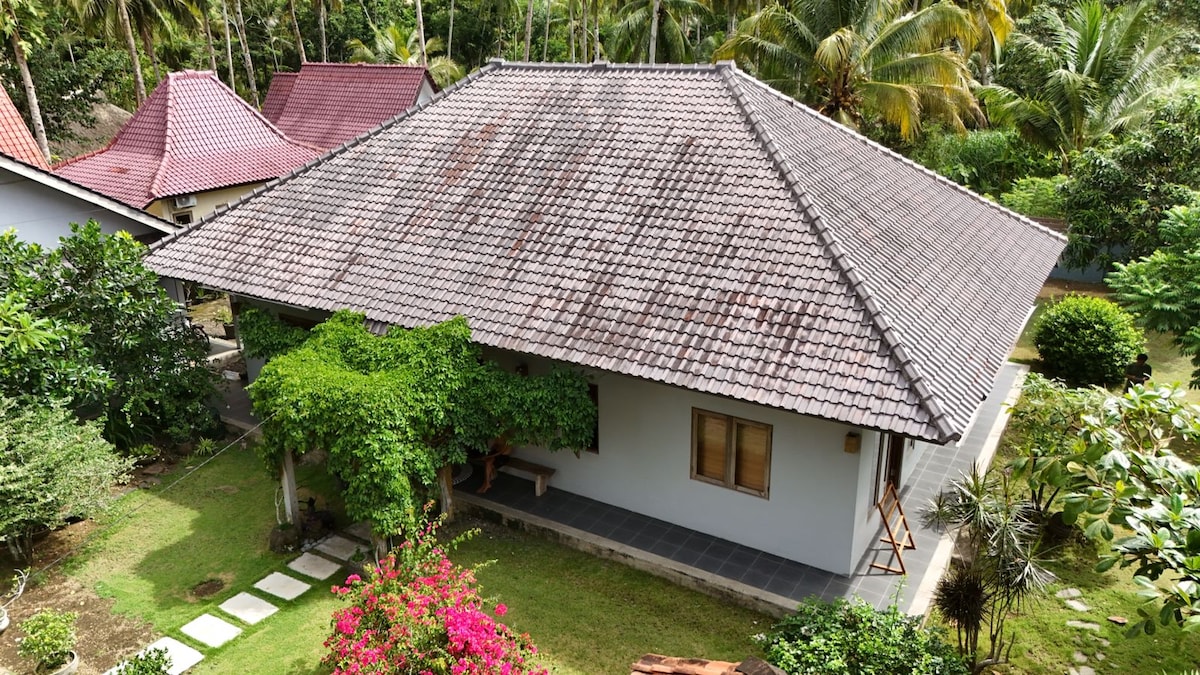 Located in a 6,000 sqm tropical garden, Frangipani Bungalow is a charming two-bedroom villa set in a village yet close to the beach. It features a semi-outdoor kitchen, a shared bathroom with hot water, a spacious terrace, and access to a shared pool. With its stylish architecture and peaceful surroundings, it’s an ideal retreat for families or friends seeking relaxation, local charm, and natural beauty all in one.