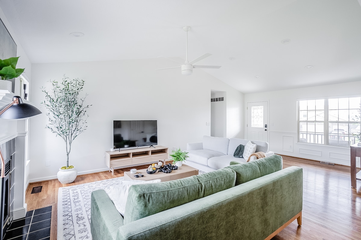 Geniet van het perfecte verblijf in West Chester/Mason, Ohio - rustig, ruim en op slechts 10 minuten van King's Island. Ons schone huis in de buitenwijk biedt gemakkelijk parkeren, wandelpaden en een speeltuin in de buurt, met het centrum van Cincinnati en de dierentuin op een klein stukje rijden. Binnen geniet je van een zwembad en pingpongtafel die kan worden omgevormd tot een eettafel, een grote tv met streaming-apps, een studeer-/kantoorruimte en een comfortabel luchtbed voor extra gasten. Attente hosts inbegrepen! Je moet 21 jaar of ouder zijn om te kunnen reserveren.