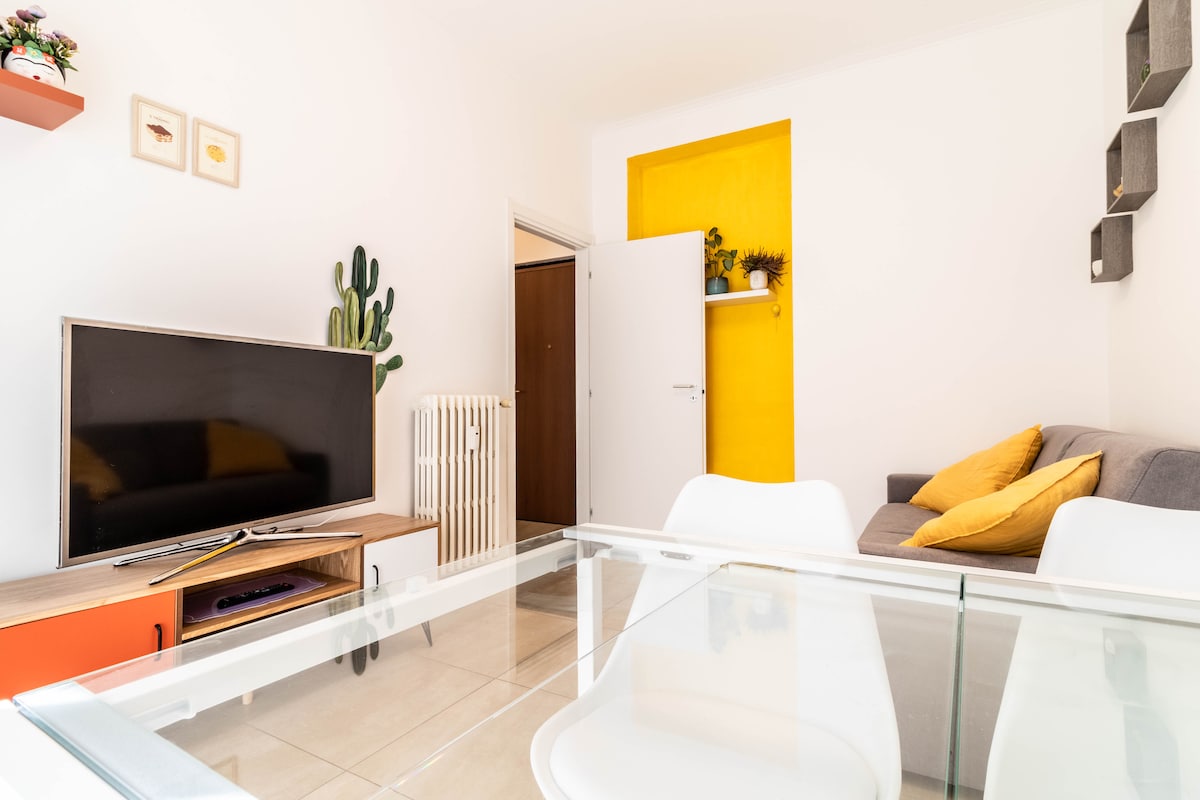 Welcome to our refined flat, located on the outskirts of Milan. Its privileged location allows you to reach the red metro in just 10 minutes, guaranteeing a convenient arrival at the Duomo in less than half an hour. Recently renovated, it offers a bright and welcoming atmosphere, enhanced by a palette of warm colours that will frame your holiday.