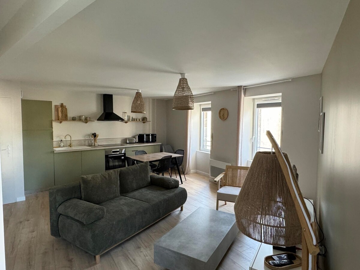 T2 DUPLEX volledig gerenoveerd en volledig uitgerust, geschikt voor maximaal 6 personen, gelegen in het hart van het centrum, dicht bij alle winkels en de markt (woensdag-zaterdag). Ideaal gelegen in het hart van Cerizay, biedt deze accommodatie gemakkelijke toegang tot alle voorzieningen. Deze accommodatie ligt op slechts 25 minuten van het Puy du Fou Park en is de ideale uitvalsbasis om de omgeving te verkennen. Bovendien kun je de Atlantische kust in slechts een uur bereiken.