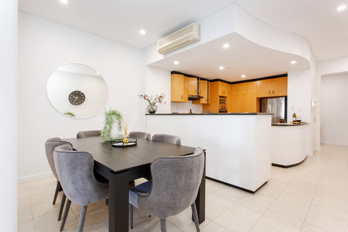 Modern appartement met 1 slaapkamer in het hart van Perth CBD, perfect gepositioneerd voor zaken of vrije tijd. Gelegen op slechts 5–7 minuten lopen van het treinstation van Perth en op ongeveer 10 minuten van de busstation, met grote winkelstraten om de hoek. Geniet van een comfortabel, volledig uitgerust verblijf met airconditioning, wifi en een wasmachine en droger. Stap uit op het eigen balkon van 10 m² en geniet van uitzicht op de skyline van de stad. Gasten kunnen ook gebruikmaken van het zwembad op het dak van het gebouw en de volledig uitgeruste fitnessruimte.
