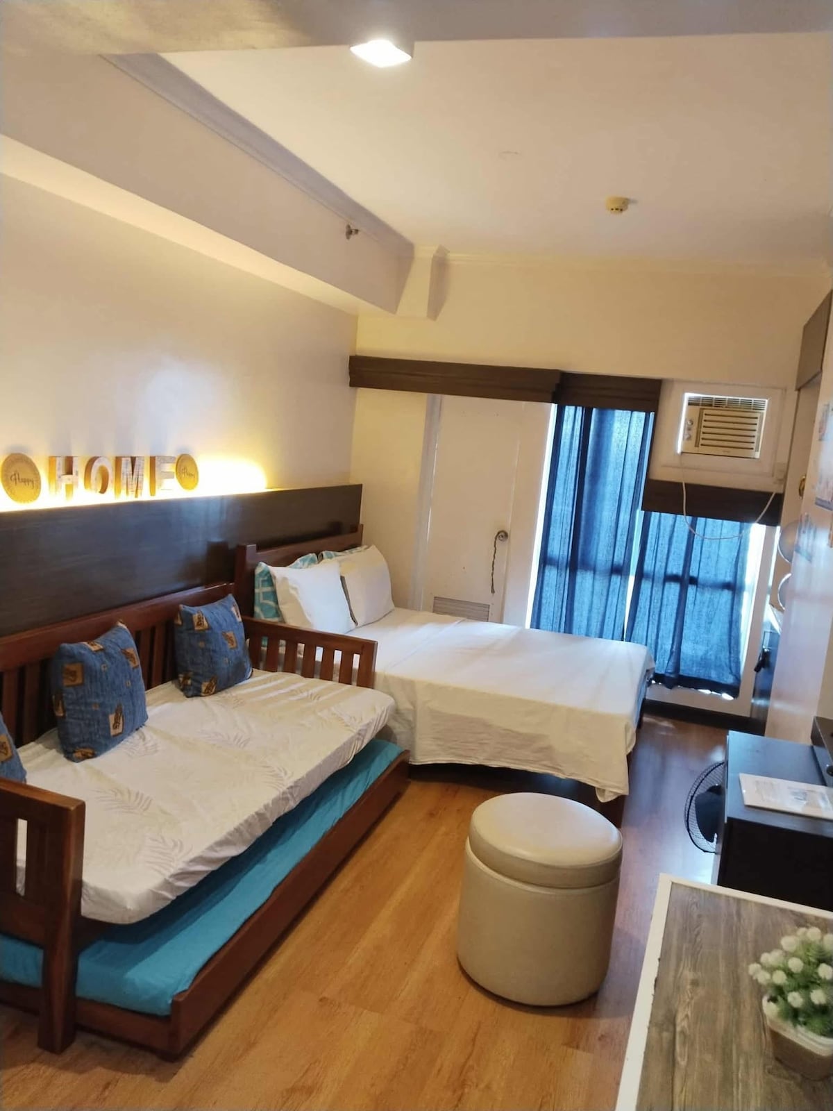 The Crest at Wind Residences Tagaytay (Taal meer/uitzicht op de snelweg) Kenmerken: 55inch smart-tv (met een speciaal Netflix-account) Wifi (30-50 Mbps) Magnetron Mini-ref (dubbele deur) Elektrische waterkoker Samsung Split-type airco Verplaatsbaar Kledingrek en kleerhangers Badkamer met waterkoker en bidet. Gratis persoonlijke zeep en tandenborstel Handdoekgebruik (alleen 2 stuks per reservering) Slaapkamerindeling: tweepersoonsbed (2 personen) Groot slaapbank (2 personen)