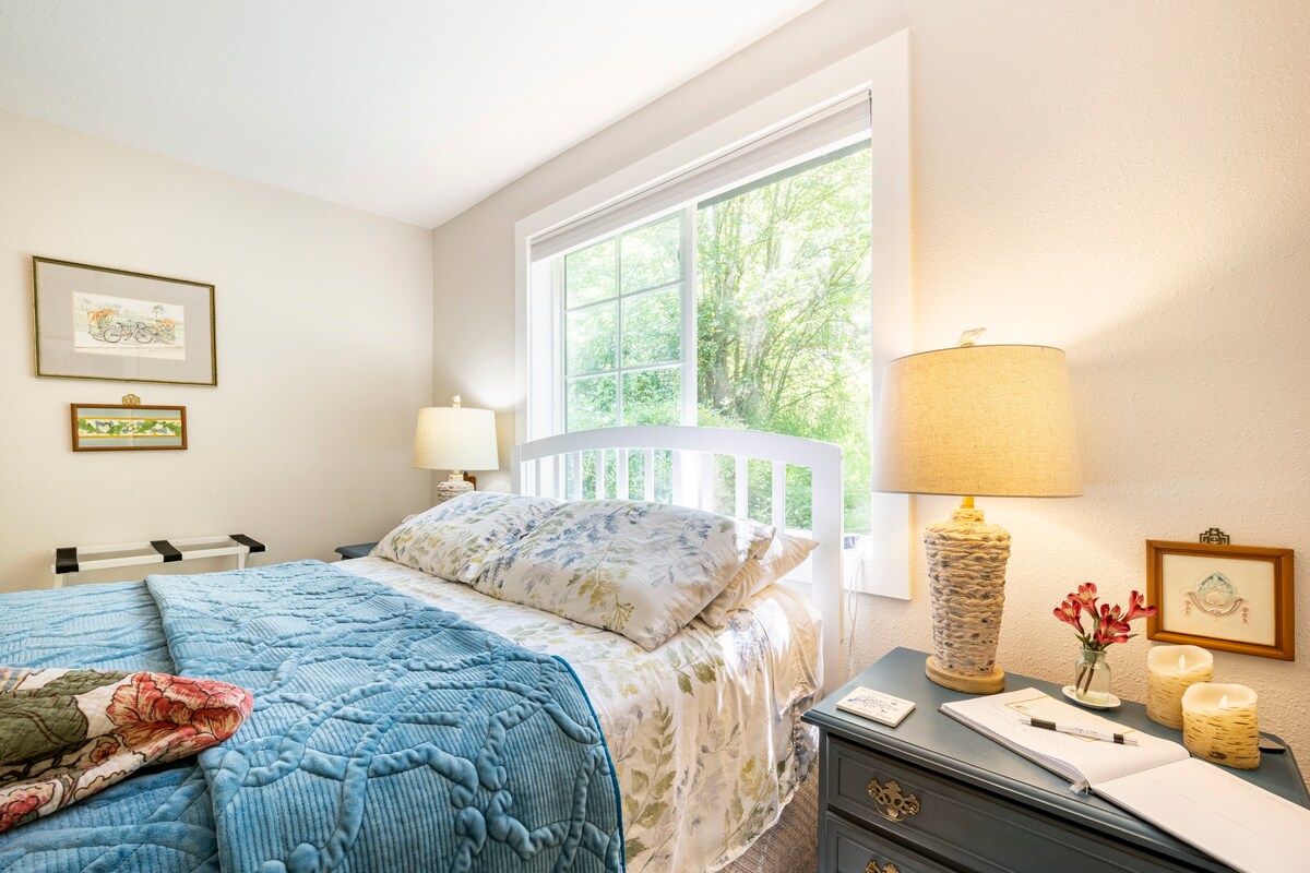 Deze rustige schuilplaats voelt alsof je midden in het bos staat, maar ligt op slechts enkele minuten van Portland. Ontspan naast de kabbelende kreek omringd door torenhoge cederbomen. De MAX Orange-lijn en het centrum van Milwaukie liggen op slechts vijf minuten afstand. De hut is gebouwd in 1928 en heeft één slaapkamer en badkamer, een woonkamer, een volledige keuken en centrale verwarming. De slaapkamer heeft een queensize bed en een eigen badkamer. Er is een uittrekbare queensize futon in de woonkamer.