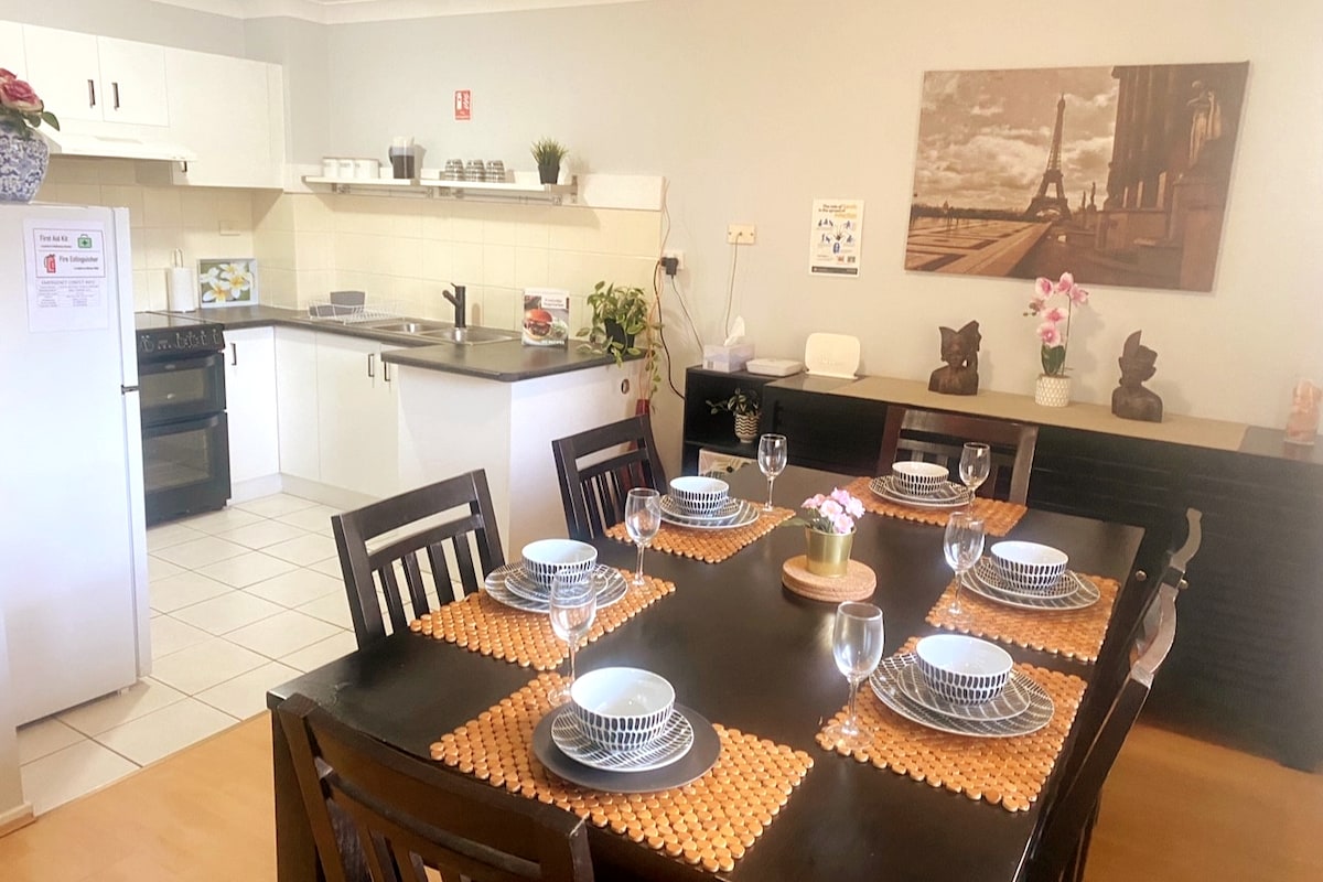 We willen graag onze onlangs gerenoveerde aparte afsluitbare unit met semi-keuken (met inductiekookplaat) en badkamer in Jordan Springs, Penrith, aanbieden. Eenheid bevindt zich aan de achterkant van de accommodatie en heeft een aparte ingang vanaf de rechterkant van de accommodatie. Het heeft gedeelde airco en alle benodigde kookvoorzieningen die nodig zijn voor comfortabele lange of korte verblijven.