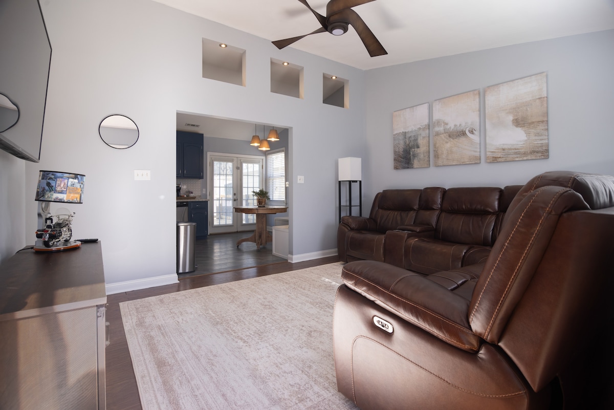 Ontspan in deze gezellige boerderij met 2 slaapkamers en 2 badkamers in Kings Mountain, NC. Op slechts enkele minuten van het nieuwe Two Kings Casino - dat in 2026 wordt uitgebreid - ben je dicht bij de wandelpaden van Crowders Mountain, de drukte van Charlotte en lokale eetgelegenheden, waardoor dit de perfecte mix van comfort en avontuur is. Met twee uitnodigende woonkamers, elk met een slaapbank, is er ruimte voor iedereen om te ontspannen. Kook in de volledig uitgeruste keuken en geniet van maaltijden op de patio aan de achterkant of in de warme eethoek.