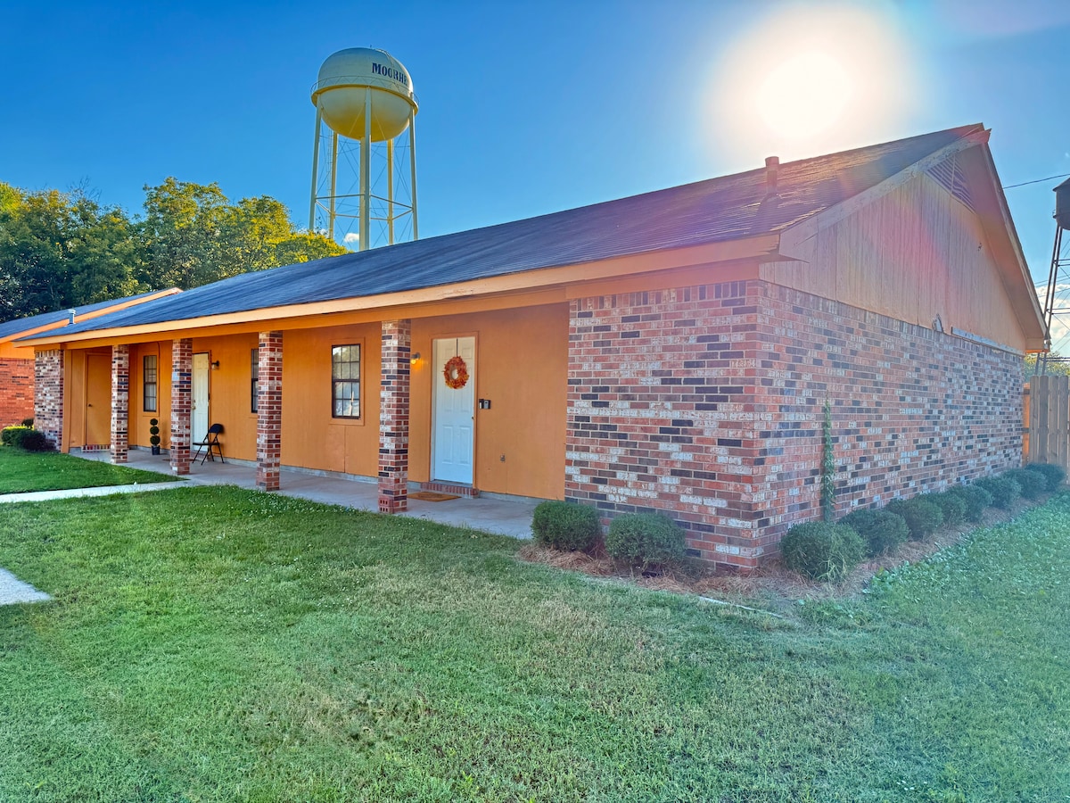 Ontspan en ontspan in deze rustige, stijlvolle ruimte! Perfect voor een koppeluitje, familiebezoeken of een weekend vol activiteiten. Deze onlangs gerenoveerde 1BR/1 Bath aparte gastsuite bevindt zich in het hart van de delta. Aangehecht aan een buitenzithoek/ontmoetingsplaats met een eigen sleutelloze ingang los van het huis. Wij zijn gelegen in een veilige buurt met toegang tot de countryclub en golfbaan. Met een rit van 2 minuten naar het centrum en de Delta State University zijn we perfect gelegen in het centrum van de stad!