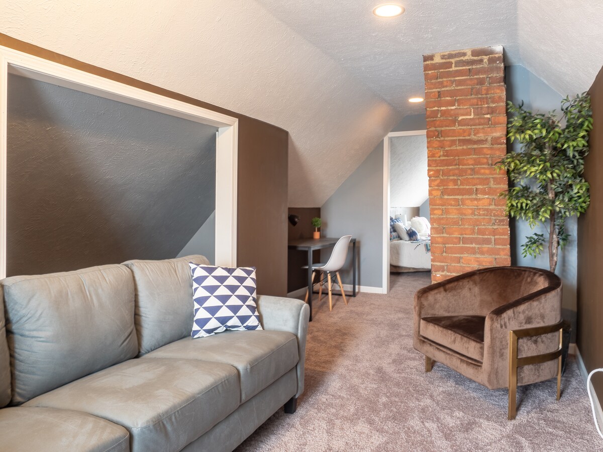 Spacious 4BR upstairs retreat in historic Tremont. Perfect for groups or medical pros! Every guest sleeps on a Queen bed. Note: Entry requires stairs; stairs are steep. • Layout: 3 private BRs (1 Queen each) + 1 large Attic Suite (2 Queens). • Commute: 5m to MetroHealth, 14m to Clinic, 8m to Downtown. • Perks: Fast Wi-Fi, ping-pong, quiet residential street. • Parking: 1 driveway spot. • Laundry 3 min drive to Tremont’s dining. Ideal for teams or families wanting space!