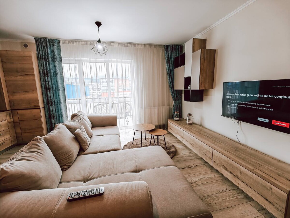 Welkom! Ons moderne appartement, gelegen op 5 minuten afstand van de busstations M26 en M21, biedt comfort en elegantie in een rustige omgeving. De M26-bus verbindt rechtstreeks met het Central Park en de sporthal van Cluj-Napoca, de host van het Untold-festival. Uitgerust met nieuwe apparaten, snel internet en slimme jaloezieën, is het perfect voor gezinnen. Dicht bij pizzeria, café met speeltuin, apotheek, banketbakkerij, 24/7 supermarkt, fastfood en fitnessruimtes.