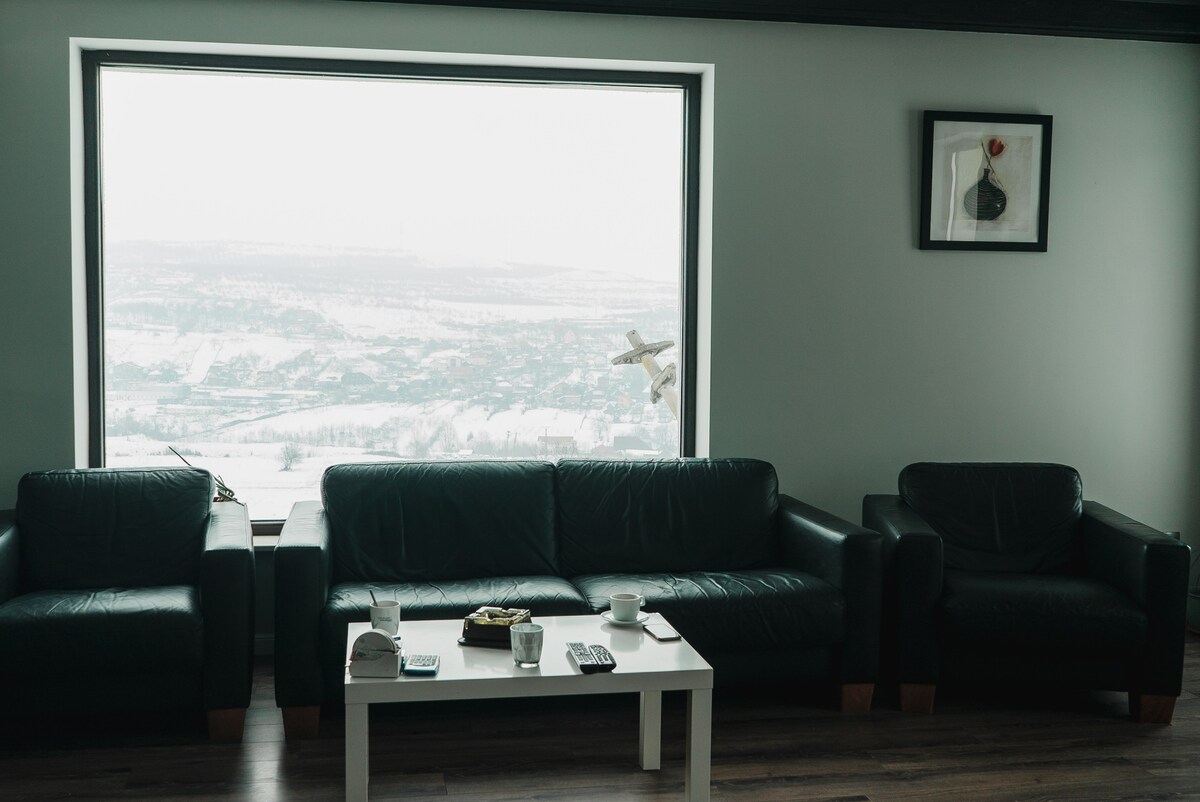 Located in the proximity of the city, about 8km from downtown, our place is built only with local & natural materials. The name comes from composer George Philippe Telemann - Clelia, a piece from a baroque sonata. Surrounded by nature, with an old oak forest neighbouring it, you can get lost searching for mushrooms. Offering fresh air and the best panorama of mountains and hills, a place where you can create or get inspired completely disconnected.