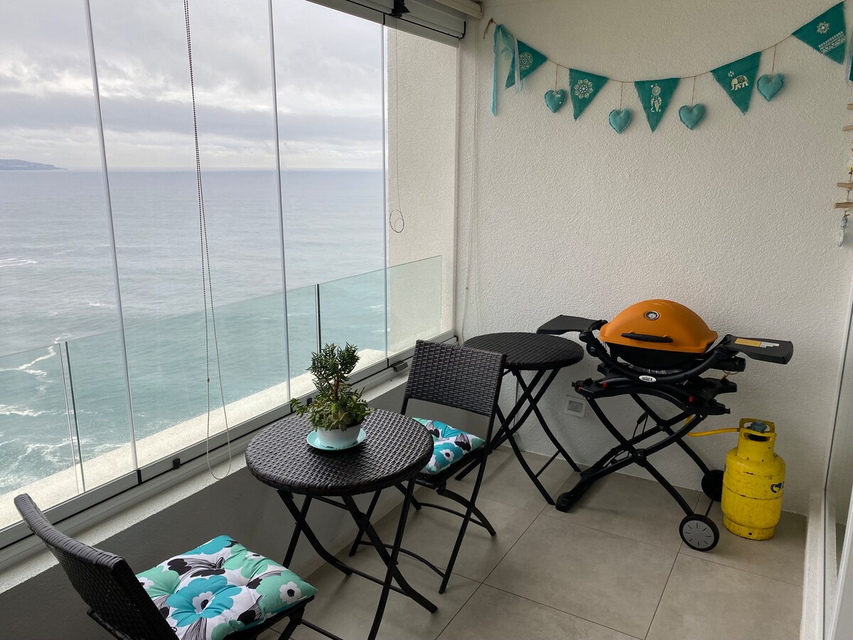 Fijn appartement met prachtige inrichting. Volledig uitgerust voor 4 personen. Eerste lijn, gratis, spectaculair en onoverwinnelijk uitzicht op Valparaíso, het is 15 minuten lopen van Cochoa-strand (je moet een trap af). Het ligt op een steenworp afstand van Lider en Jumbo Supermarket. Inclusief 1 eigen ondergrondse parkeerplaats. Uitstekende connectiviteit en openbaar vervoer een straat verderop. **IS NIET IN DE SINKHOLE ** APPARTEMENT ALLEEN OP AIRBNB Geen sociale media of andere platforms.