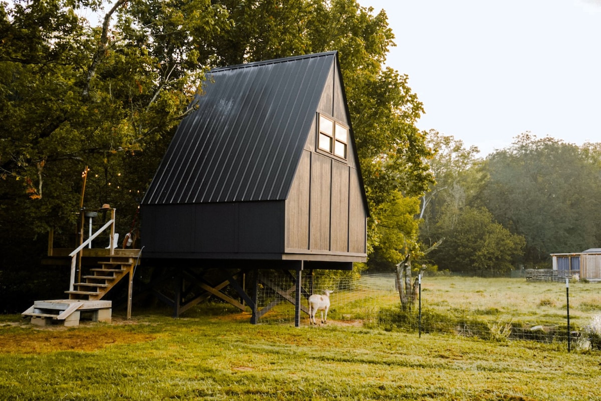 Betoverde boomhut met A-frame op Glamping Goat Farm