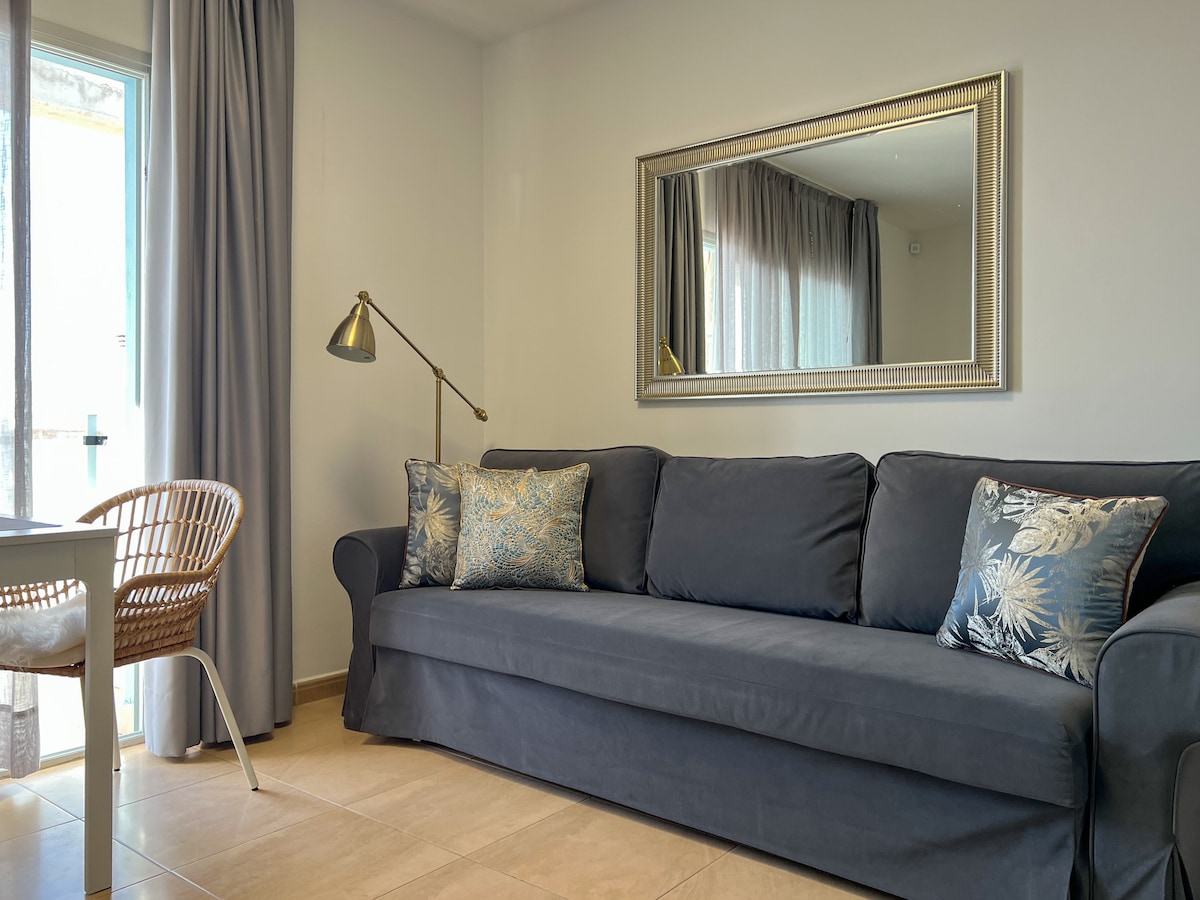 Modern appartement met balkon en buitengewoon uitzicht op zee, zeer goed gelegen, minder dan drie minuten lopen van het strand. Gerenoveerd, met gratis internet, airconditioning, tv met internationale zenders, rustig, gezellig en licht, gezellig en licht, met een dubbele hoogte en idyllische loft.