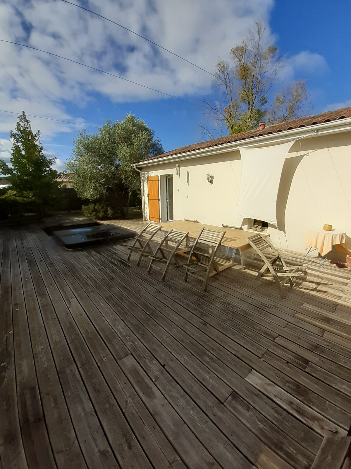 "La Cabane" bestaat uit panelen van Douglas fir en volledig glijdende plexiglas, die zich aanpassen aan je wensen. Op de patio kun je genieten van het uitzicht op de tuin en het omliggende platteland. De kleine keuken en het bijgebouw geven je volledige autonomie voor je maaltijden. De honderd procent schuifwanden leven op het ritme van het weer en het hout; een atypische ervaring, in het hart van het platteland van Charente!