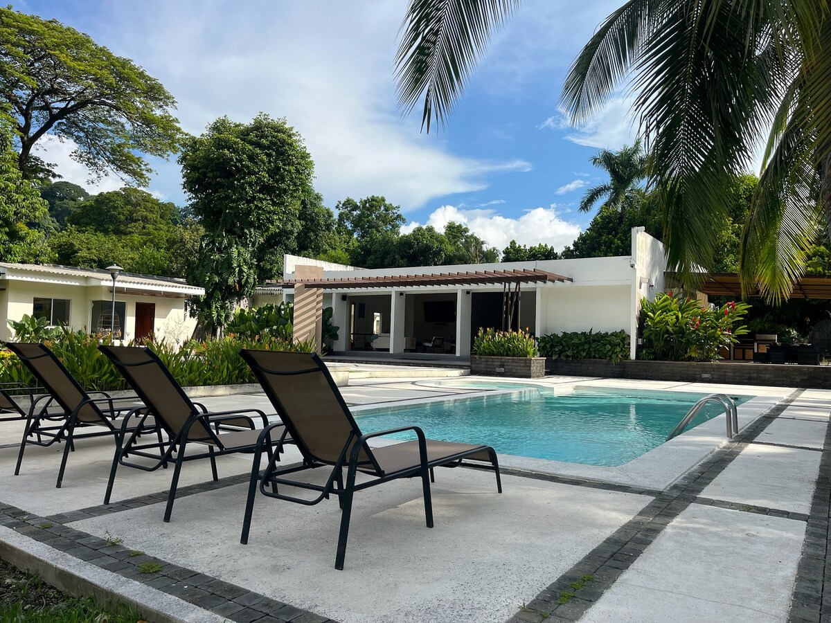 Een plek omgeven door natuur om te genieten van een groot zwembad om te vieren. Het heeft een binnen- en buitenkookruimte. Het heeft een grote moderne hoofdbadkamer in het huis. De ruimte is voor 6 tot 10 personen. bij aankomst in de accommodatie is de beheerder beschikbaar om te helpen, hij en zijn gezin slapen in een huis volledig gescheiden van het hoofdhuis met respect voor de privacy van de bewoners. Starlink Wifi is aanwezig op het terrein