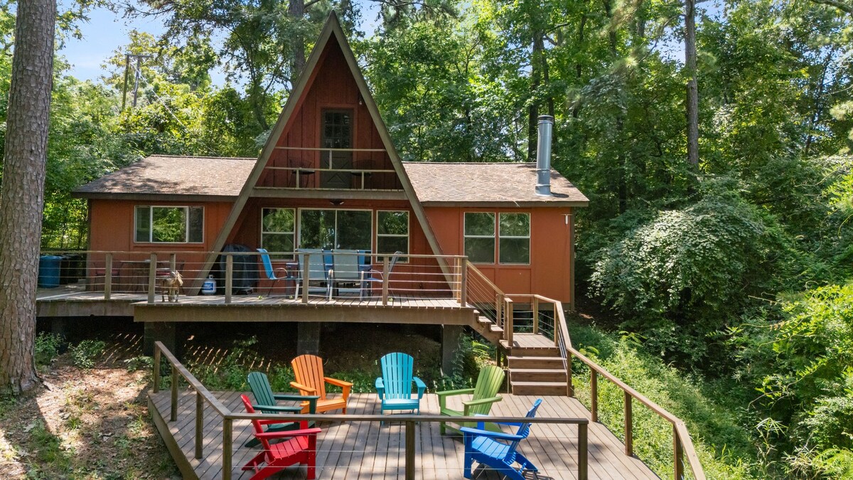 A Red House - Lakeview AFrame on Lake Livingston