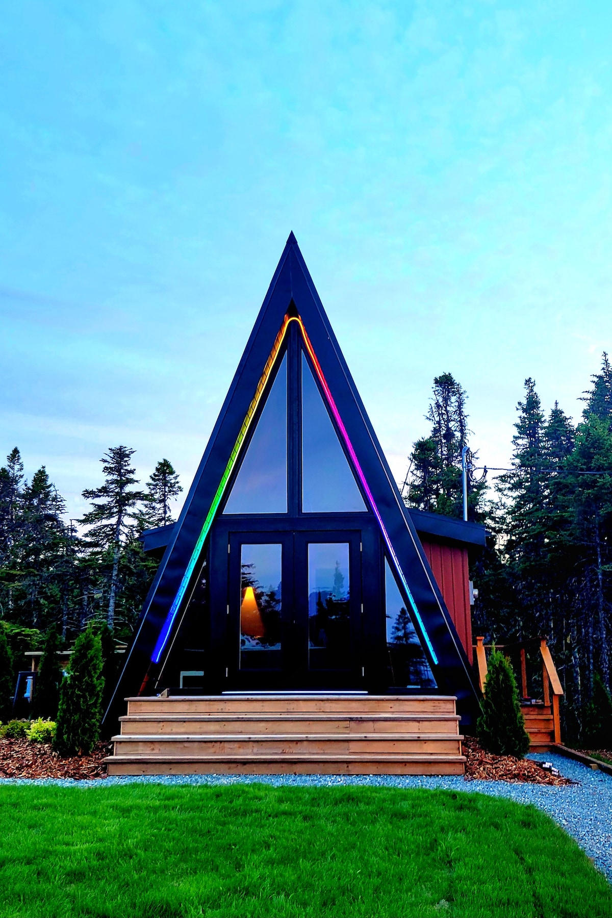 Enjoy the sounds of nature while you stay in this uniquely modern tiny home decorated with touches of Newfoundland. Bordered by a beautiful river and surrounded by trees you have complete privacy as you indulge in our hot tub, sauna and stunning scenery. Hot tub is included in the price of booking, the sauna is available at an additional cost of $100. Great after a day of hiking the East Coast Trail.