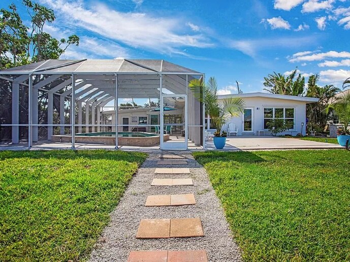 Relax with the whole family at this peaceful place to stay on Fort Myers Beach. Fully renovated with 3 BR & 2 full bath. New central AC/ Heating unit. Enjoy a day in the heated pool or on your private dock looking out to the bay. 10 minute walk to the beach, Publix or the mid-island restaurants at the marina behind Publix. 3 BR, 2 bath with one room being a twin trundle bed. Enjoy one of the most quiet areas on the island to take walks or morning bike rides. Fully renovated since Ian & Milton