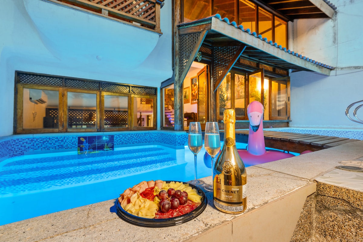Stap in de Medellín Cartel-geschiedenis met dit narco-herenhuis uit de jaren 80 dat ooit verbonden was met José Gonzalo Rodríguez Gacha "El Mexicano" en Pablo Escobar. 80% origineel decor blijft met 7 slaapkamers, 12 bedden, neonverlichte suites en jacuzzi voor 8. Geniet van het zwembad aan het strand met uitzicht op Castillogrande, een pooltafel, gouden servies en fotorekwisieten zoals replica's van wapens, nep geld en goudstaven. Op slechts 5 minuten van de oude stad, met maid- en butlerservice in de meest prestigieuze buurt van Cartagena