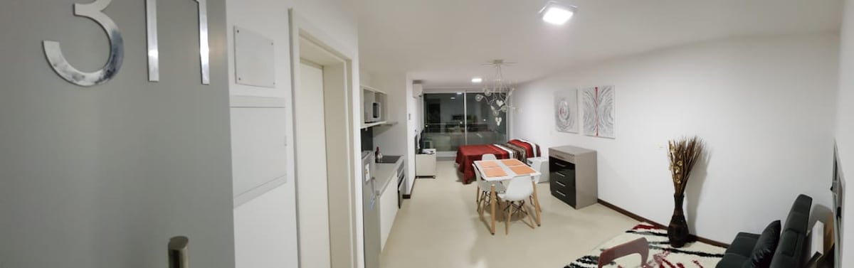 Geniet van een uniek verblijf in Altos del Virrey, Colonia del Sacramento. Modern en licht appartement met geïntegreerde woonkamer-eetkamer, uitgeruste keuken, complete badkamer en slaapkamer met tweepersoonsbed. Het heeft een eigen balkon met uitzicht op de zonsondergang, ideaal om te ontspannen en te genieten van het moment. Het gebouw biedt een buitenzwembad en een verwarmd binnenzwembad. Gelegen op 2 blokken van het strand en op slechts 2 km van het historische centrum (5 minuten met de auto). Ideaal voor rust en uitstapjes.