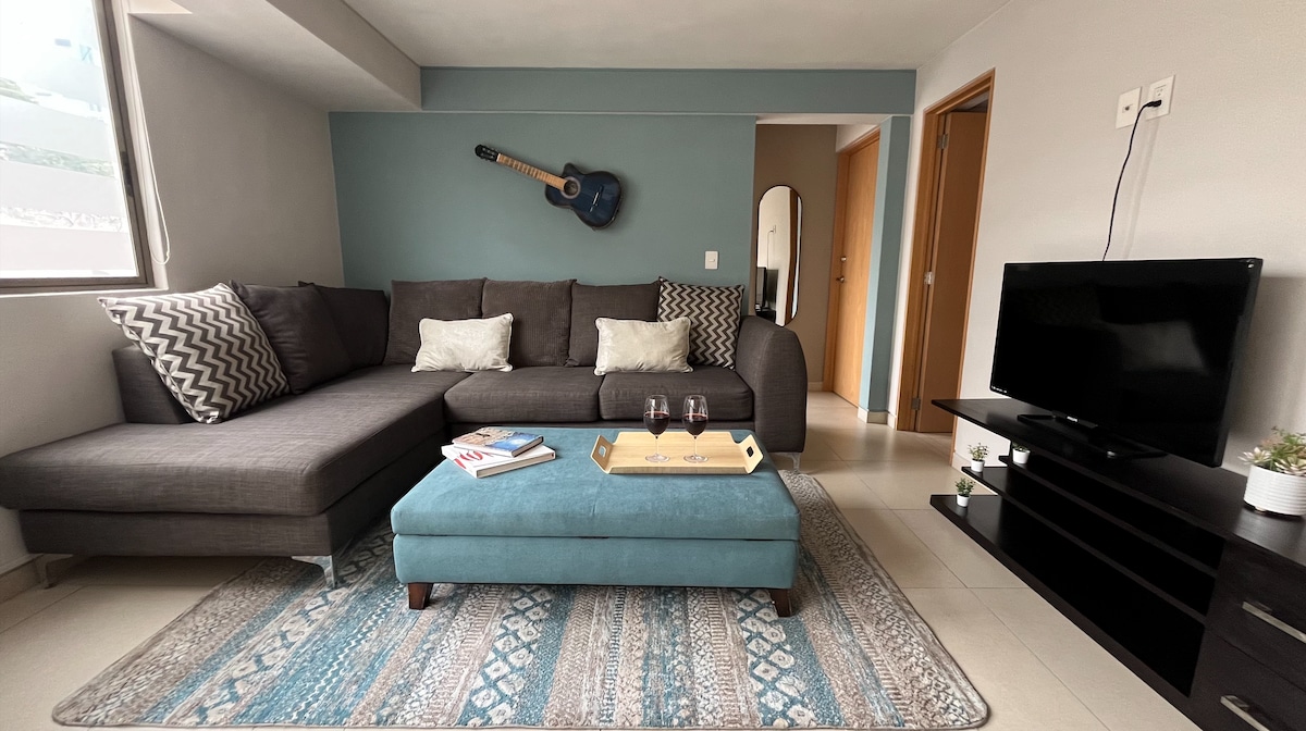 Licht appartement op de 7e verdieping (bovenste verdieping), met een balkon en uitzicht op de stad en Río Becerra–Viaducto Miguel Alemán. Het beschikt over 2 slaapkamers met ruime kasten, een woon- en eethoek, uitgeruste keuken, badkamer en kamerhoge ramen. Smart-tv's (50"en 24") met Netflix, Prime en YouTube (gasten loggen in op hun eigen accounts). Inclusief Alexa, koelkast, magnetron en koffiezetapparaat. Toegang voor voetgangers tot het gebouw heeft ongeveer 10 treden. Ideaal voor een comfortabel, goed verbonden verblijf.